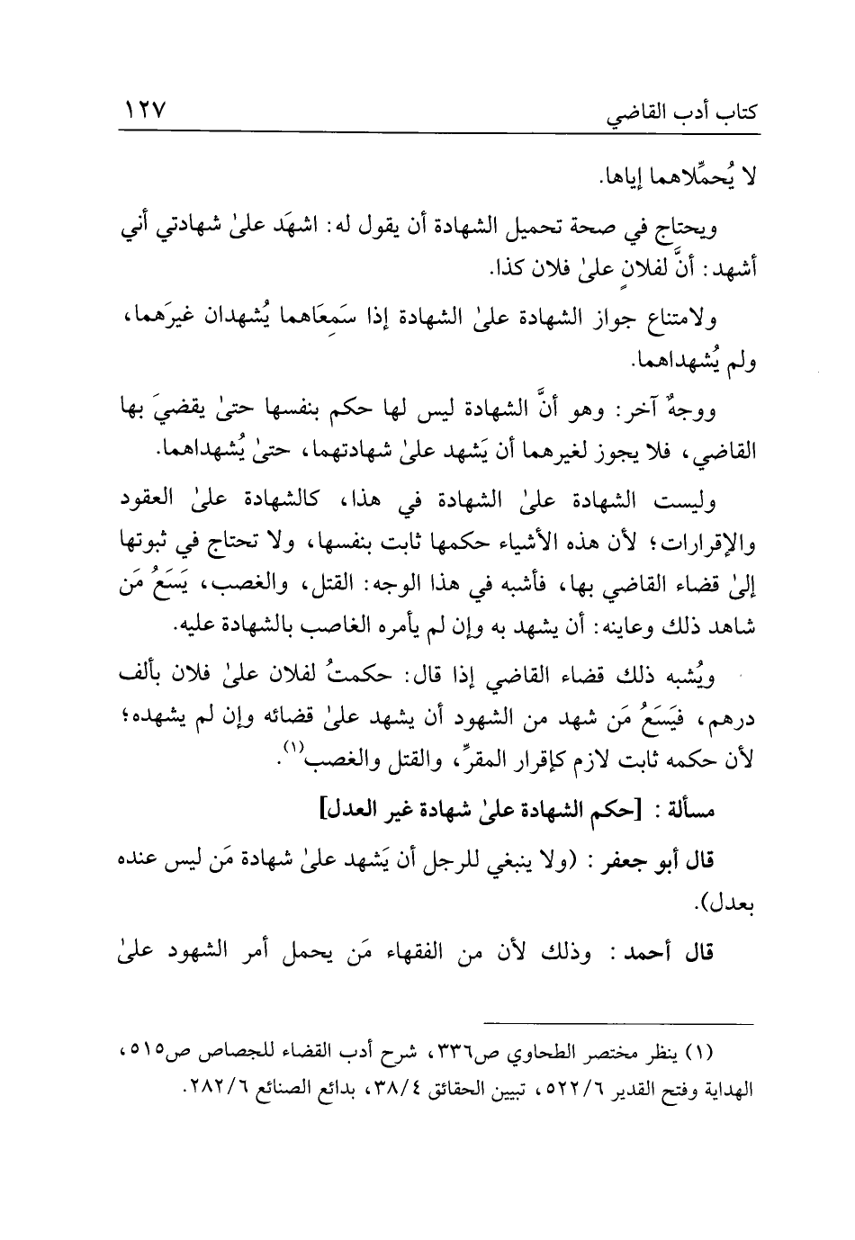 قال أبو جعفر: (ولا ينبغي للرجل أن يشهد على شهادة من ليس عنده بعدل).