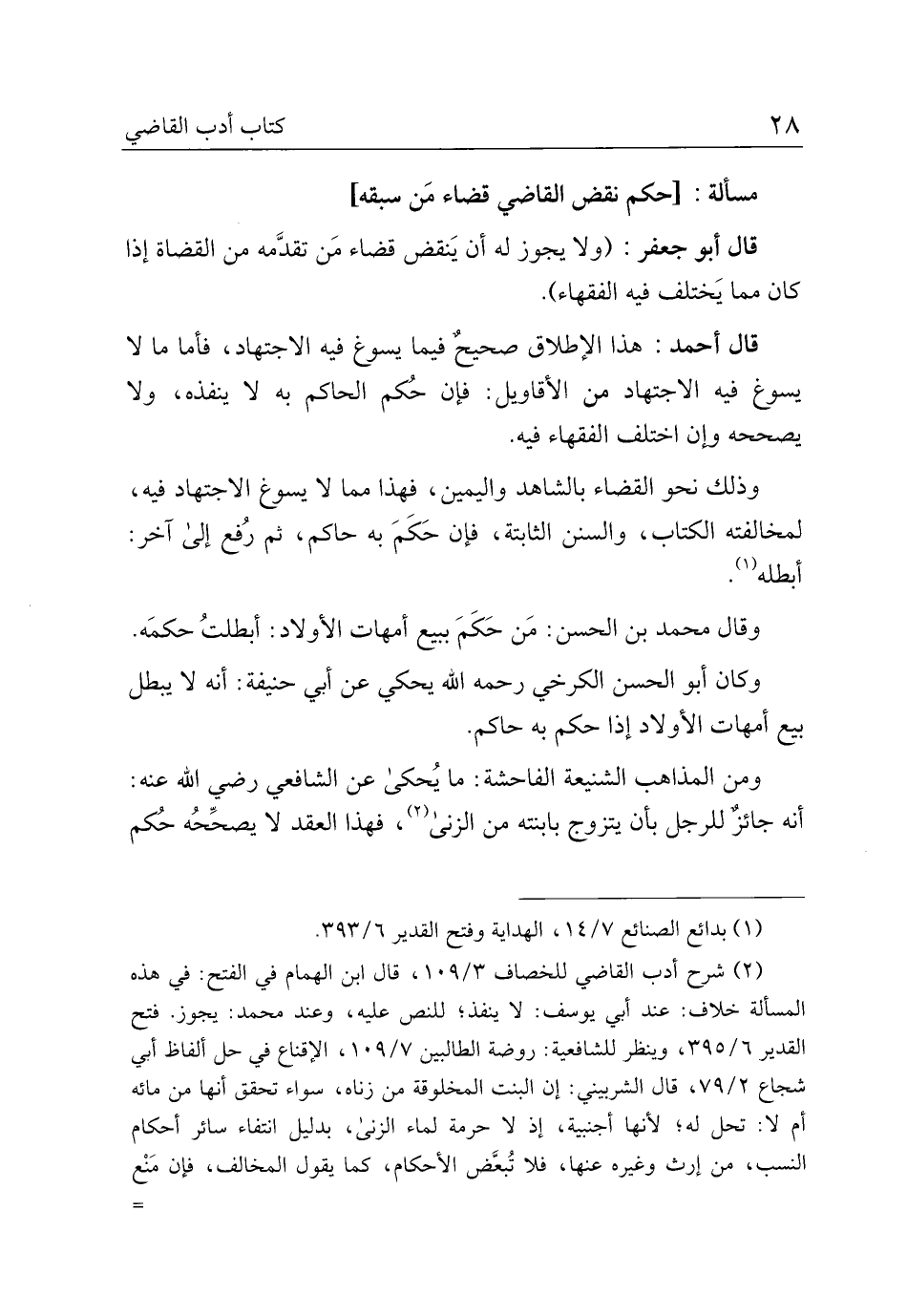 قال أبو جعفر: (ولا يجوز له أن ينقض قضاء من تقدمه من القضاة إذا كان مما يختلف فيه الفقهاء).