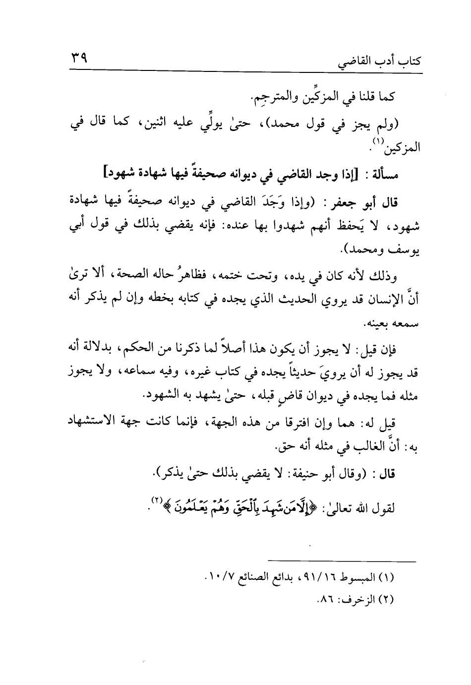 قال أبو جعفر: (وإذا وجد القاضي في ديوانه صحيفة فيها شهادة شهود، لا يحفظ أنهم شهدوا بها عنده: فإنه يقضي بذلك في قول أبي يوسف ومحمد).