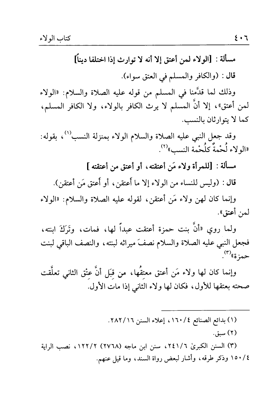 وقد جعل النبي عليه الصلاة والسلام الولاء بمنزلة النسب، بقوله: "الولاء لحمة كلحمة النسب".