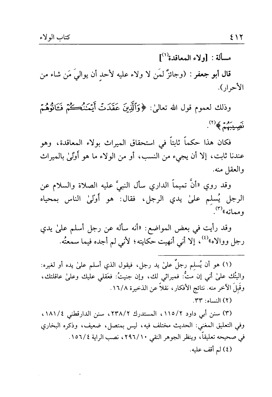 وقد رأيت في بعض المواضع: "أنه سأله عن رجل أسلم على يدي رجل ووالاه"، إلا أني أنهيت حكايته؛ لأني لم أجده فيما سمعته.