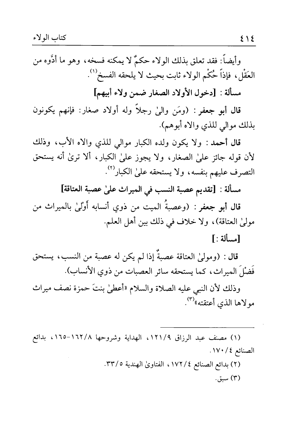 قال أبو جعفر: (ومن والى رجلا وله أولاد صغار، فإنهم يكونون بذلك موالي للذي والاه أبوهم).