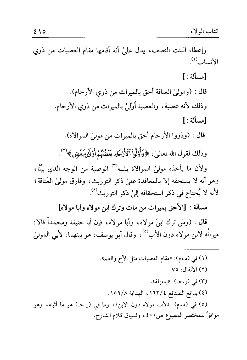 مسألة: [الأحق بميراث من مات وترك أبن مولاه وأبا مولاه]