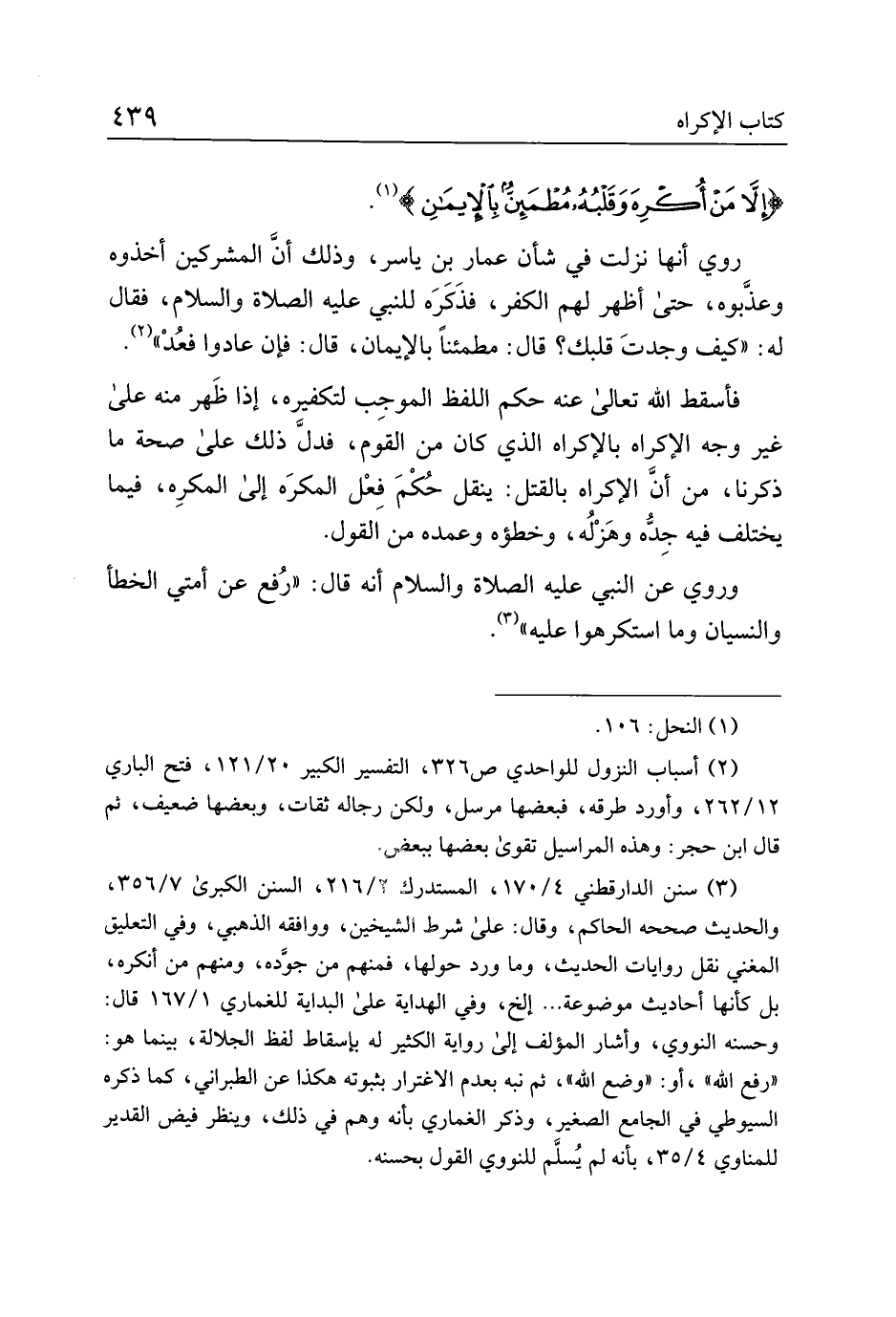 وروي عن النبي عليه الصلاة والسلام أنه قال: "رفع عن أمتي الخطأ والنسيان ما استكرهوا عليه".