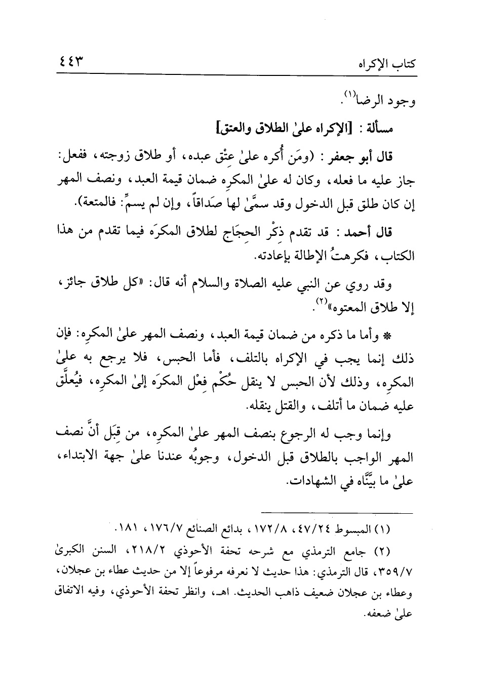 قال أحمد: قد تقدم ذكر الحجاج لطلاق المكره فيما تقدم من هذا الكتاب، فكرهت الإطالة بإعادته.
