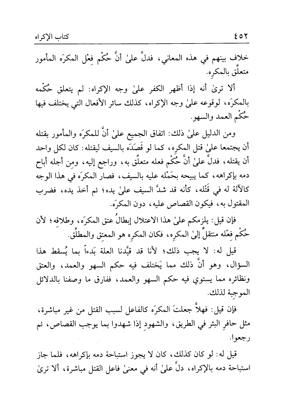 قيل له: لو كان كذلك، كان لا يجوز استباحة دمه بإكراهه، فلما جاز استباحة دمه بالإكراه، دل على أنه في معنى فاعل القتل مباشرة، ألا ترى