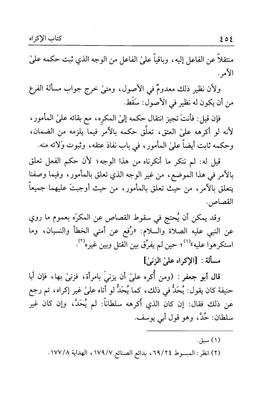 قال أبو جعفر: (ومن أكره على أن يزني بامرأة، فزنى بها، فإن أبا حنيفة كان يقول: يحد في ذلك، كما يحد لو أتاه على غير إكراه، ثم رجع عن ذلك فقال: إن كان الذي أكرهه سلطانا: لم يحد، وإن كان غير سلطان: حد، وهو قول أبي يوسف.