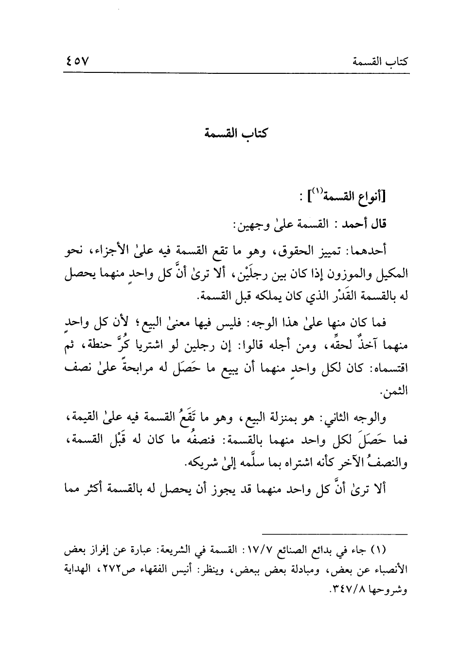 فما كان منها على هذا الوجه: فليس معنى البيع؛ لأن كل واحد منهما آخذ لحقه، ومن أجله قالوا: إن رجلين لو اشتريا كر حنطة، ثم اقتسماه: كان لكل واحد منهما أن يبيع ما حصل له مرابحة على نصف الثمن.
