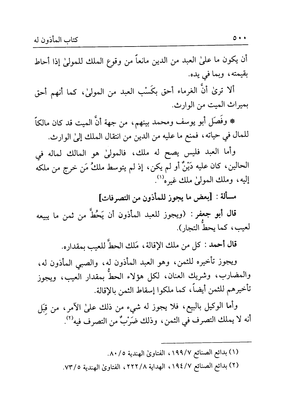 ويجوز تأخيره للثمن، وهو العبد المأذون له، والصبي المأذون له، والمضارب، وشريك العنان، لكل هؤلاء الحط بمقدار العيب، ويجوز تأخيرهم للثمن أيضا، كما ملكوا إسقاط الثمن بالإقالة.