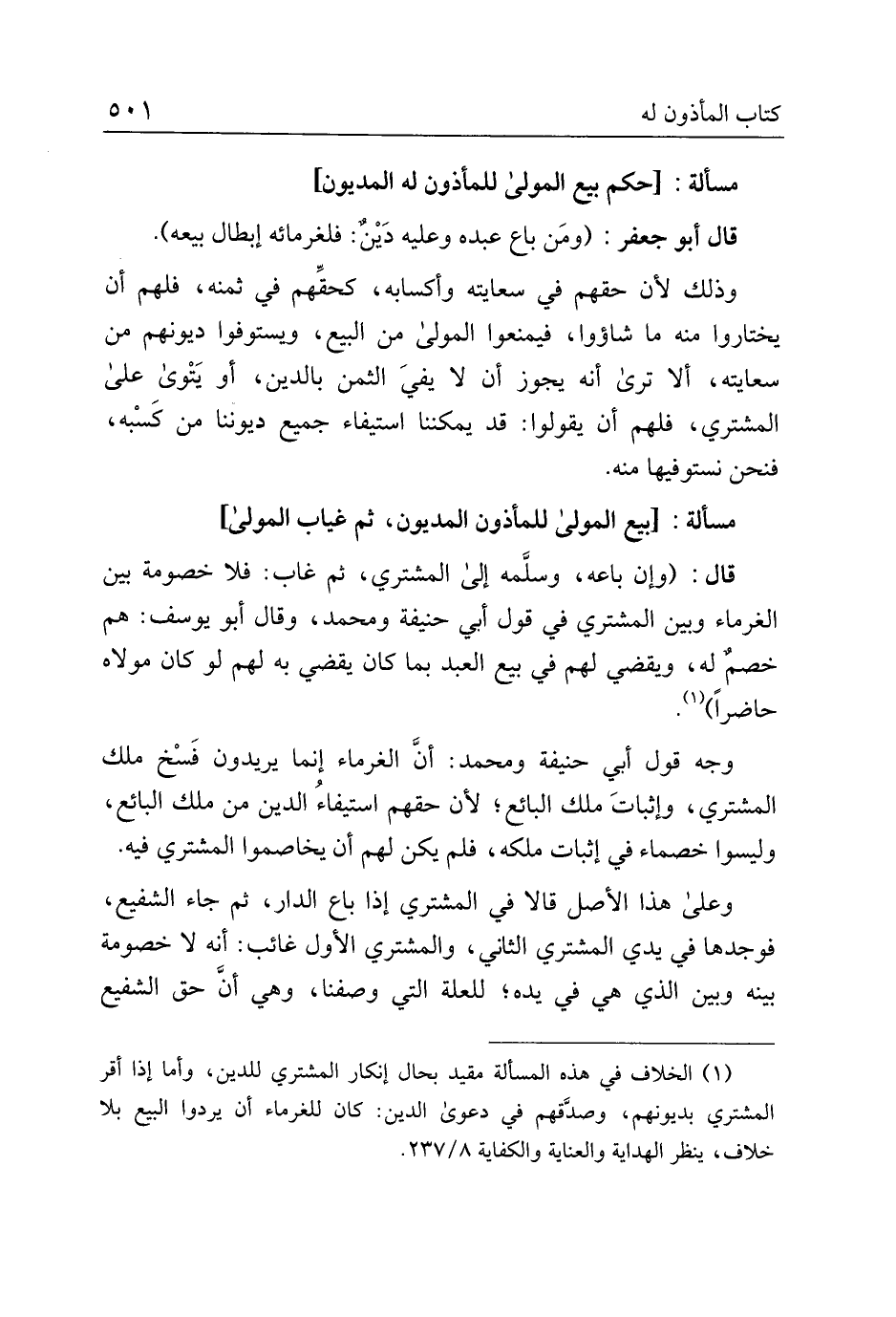 قال أبو جعفر: (ومن باع عبده وعليه دين: فلغرمائه إبطال بيعه).