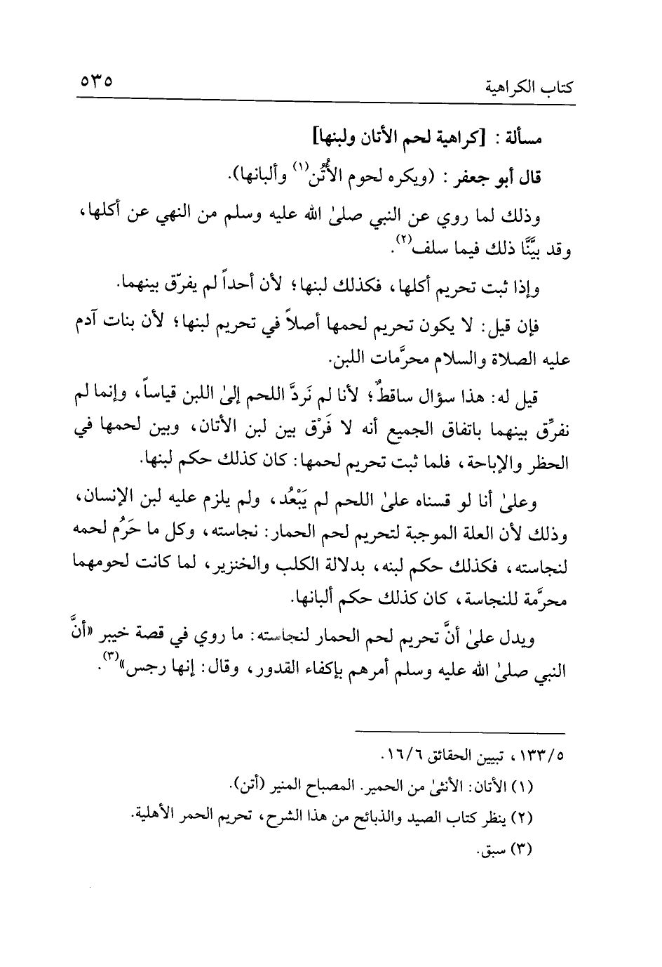 قال أبو جعفر: (ويكره لحوم الأتن وألبانها).