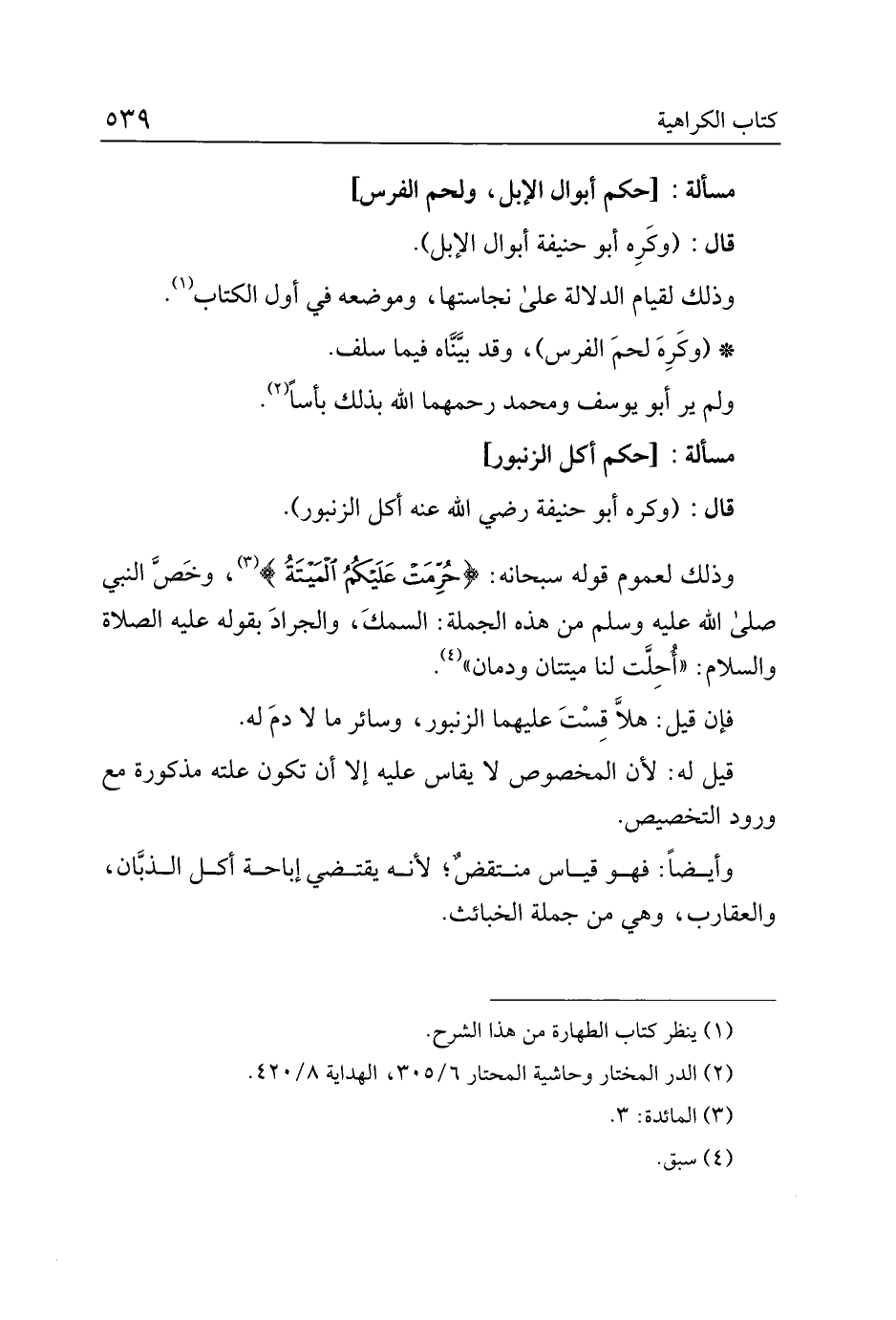 * (وكره لحم الفرس)، وقد بيناه فيما سلف.