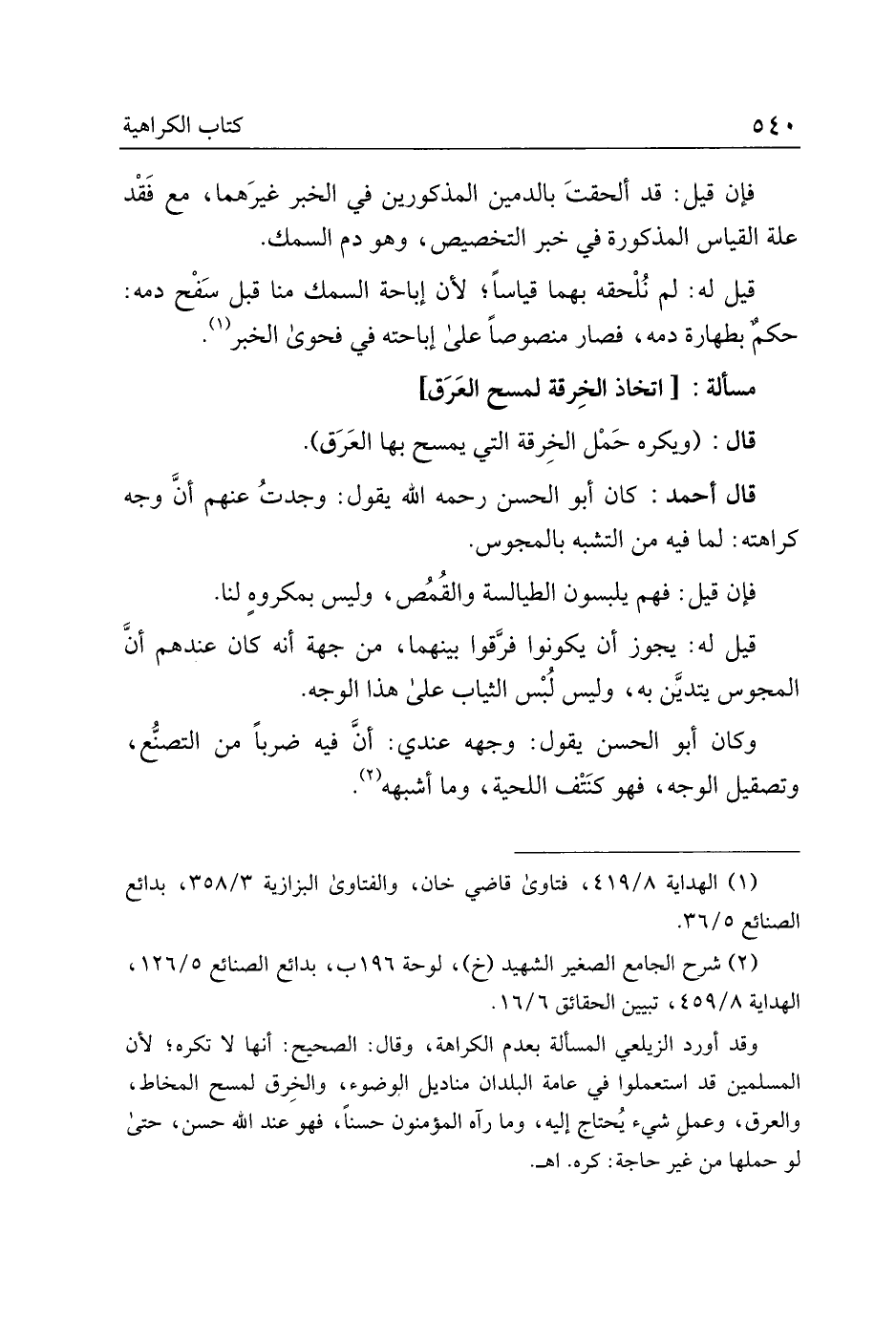قال أحمد: كان أبو الحسن رحمه الله يقول: وجدت عنهم أن وجه كراهته: لما فيه من التشبيه بالمجوس.