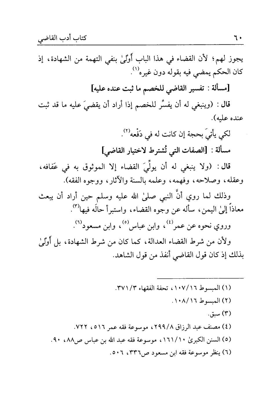 قال: (ولا ينبغي له أن يولي القضاء إلا الموثوق به في عفافه، وعقله، وصلاحه، وفهمه، وعلمه بالسنة والآثار، ووجوه الفقه).