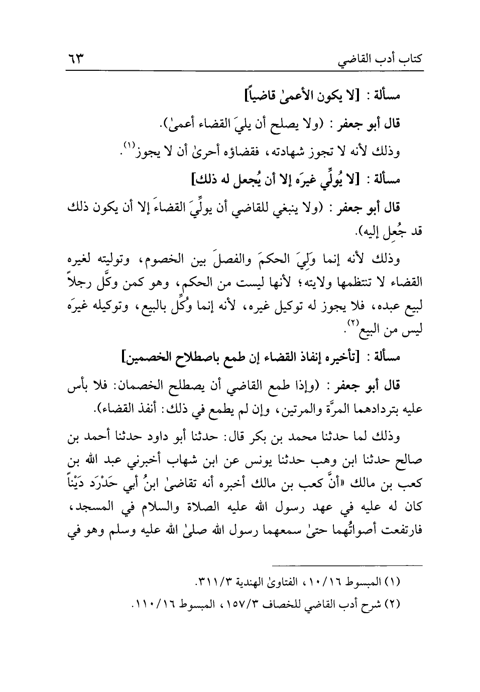 مسألة: [لا يكون الأعمى قاضيًا]
