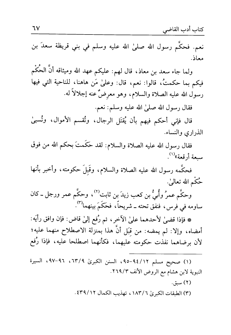 فحكمه رسول الله عليه الصلاة والسلام، وقبل حكومته، وأخبر بأنها حكم الله تعالى.