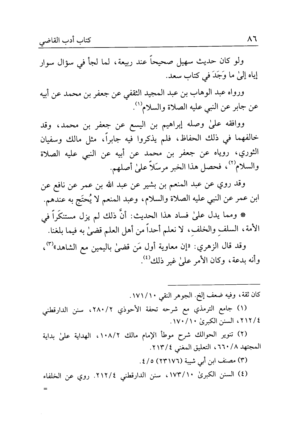 ولو كان حديث سهيل صحيحًا عند ربيعة، لما لجأ في سؤال سوار إياه إلى ما وجد في كتاب سعد.