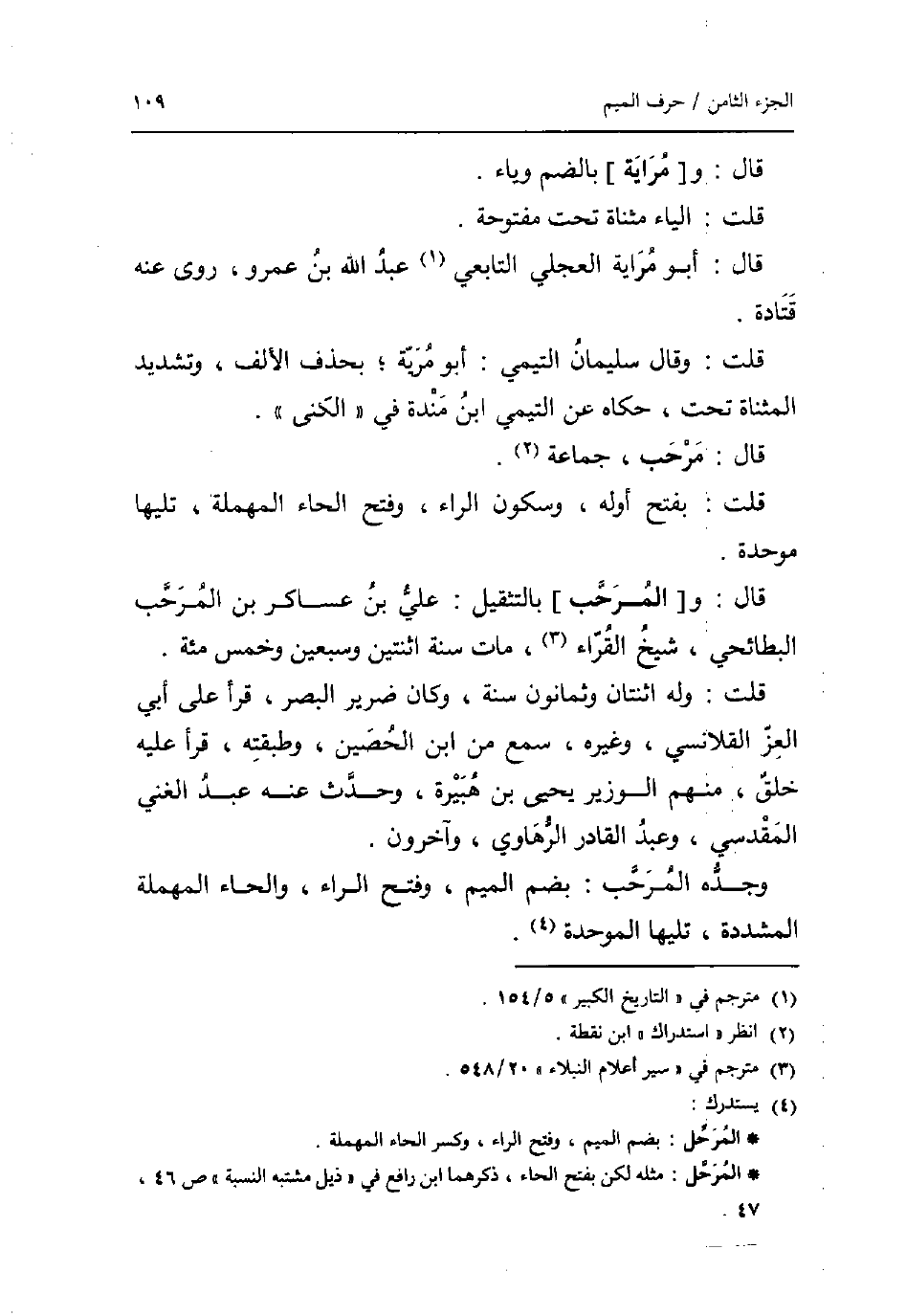قَالَ: والمُرَجّا: بِضَم أَوله، وجيم ثَقيلَة، فِي الْأَعْلَام.
