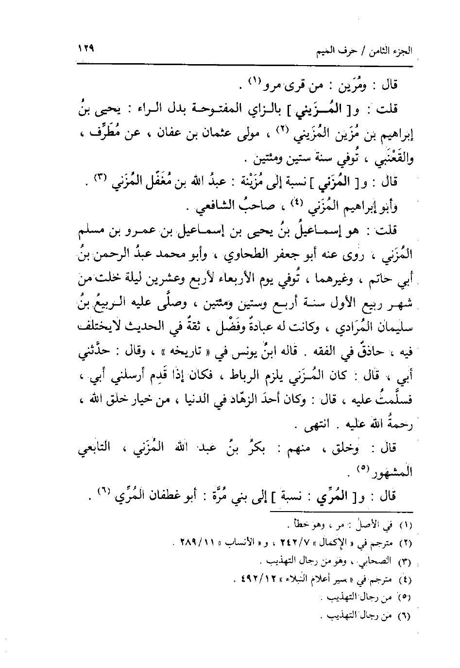 و [المَرِّيني] بتَشْديد الرَّاء: مغيث بن ثَوْر المريني، نزيل قَرْيَة يُقَال: لَهَا: مرين، فِي أَيَّام الْمَأْمُون، وإياه هجا أَبُو الْأَصْبَغ المسلمي بقوله من أَبْيَات: