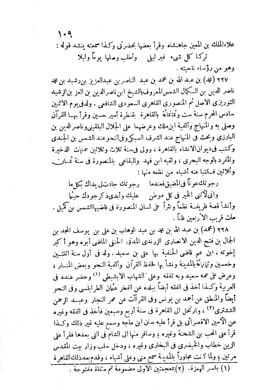 وَأَنْشَأَ قصَّة ظريفة نظما ونثرا على لِسَان المنصورة فِي قاضيها الشَّمْس بن كميل. مَاتَ قريب الْأَرْبَعين ظنا. مُحَمَّد بن عبد الله بن مُحَمَّد بن عبد الْوَهَّاب بن علين يُوسُف الْمجد بن الْجمال بن فتح الدّين الْأنْصَارِيّ الزرندي الْمدنِي الْحَنَفِيّ الْمَاضِي أَبوهُ وَهُوَ أكبر إخْوَته، ابْن عَم قَاضِي الْحَنَفِيَّة بهَا عَليّ بن سعيد. ولد فِي أول سنة اثْنَتَيْنِ وَخمسين وَثَمَانمِائَة بِالْمَدِينَةِ وَنَشَأ بهَا فحفظ الْقُرْآن وألفية النَّحْو وَبَعض الْمنَار، وَعرض على عَمه سعيد وَبِه تفقه وعَلى الشهَاب الأبشيطي وَحضر عِنْده فِي الْعَرَبيَّة وَكَذَا أَخذ فِي الْفِقْه أَيْضا بِبَلَدِهِ عَن الْفَخر عُثْمَان الطرابلسي وَفِي النَّحْو أَيْضا والمنطق عَن أَحْمد بن يُونُس وَفِي القراآت عَن عمر النجار وَعبد الرَّحْمَن الششتري، وارتحل إِلَى الْقَاهِرَة فِي سنة أَربع وَسبعين فَأخذ فِي الْفِقْه وَغَيره عَن الْأمين الأقصرائي بل قَرَأَ عَلَيْهِ سنَن ابْن ماجة وَسمع عَلَيْهِ غير ذَلِك وَكَذَا قَرَأَ على الْمُحب بن الشّحْنَة وَغَيره وسافر مِنْهَا إِلَى الشَّام فِي الَّتِي بعْدهَا فَقَرَأَ على الزين خطاب والخيضري فِي البُخَارِيّ وَغَيره، وَدخل حلب وزار بَيت الْمُقَدّس مرَّتَيْنِ وَلما كنت مجاورا بِالْمَدِينَةِ سمع مني وعَلى أَشْيَاء، وَقدم بعد ذَلِك الْقَاهِرَة