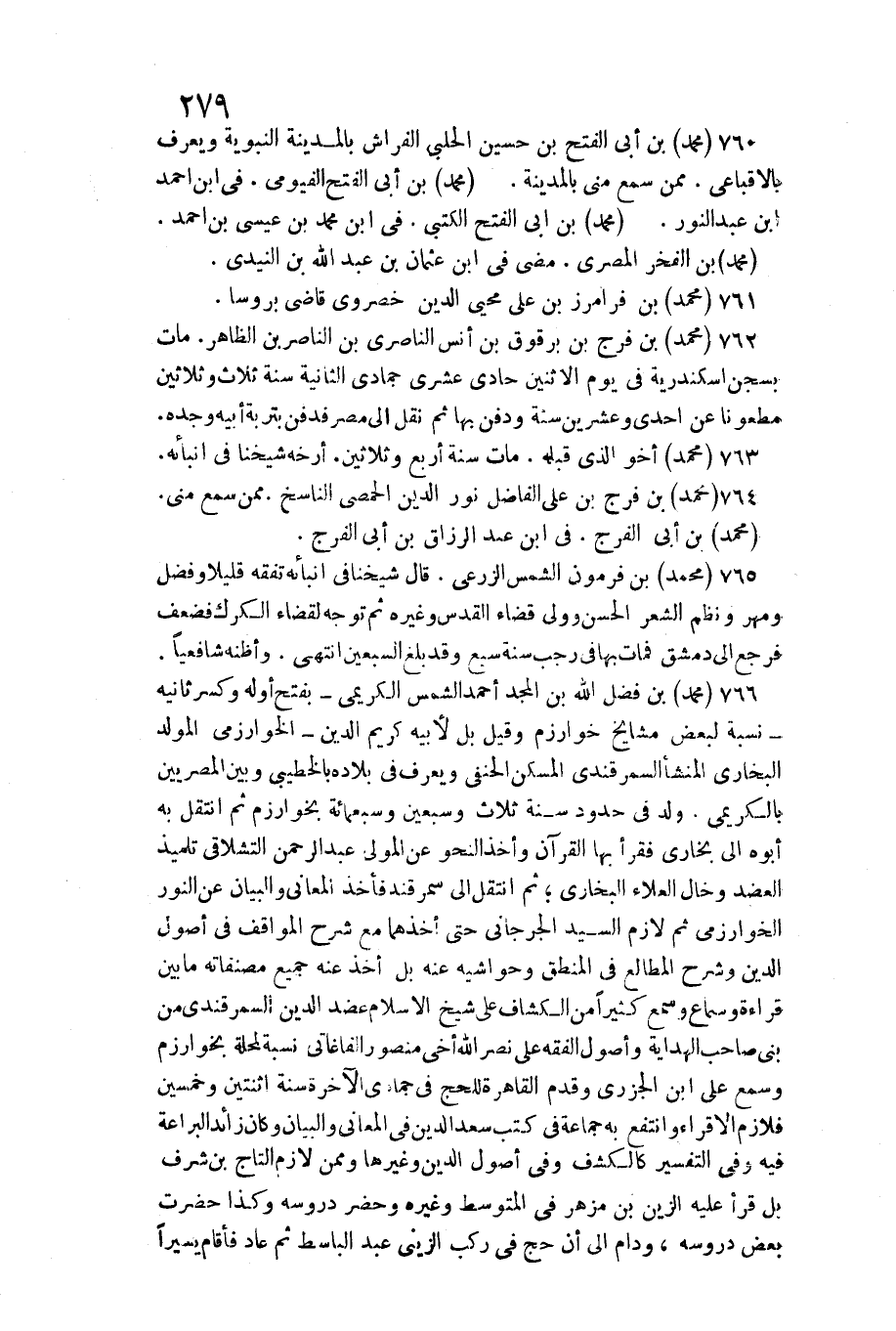 مُحَمَّد بن الْفَخر الْمصْرِيّ. مضى فِي ابْن عُثْمَان بن عبد الله بن النيدي. مُحَمَّد بن فرامرز بن عَليّ محيي الدّين خصروي قَاضِي بروسا. مُحَمَّد بن فرج بن برقوق بن أنس الناصري بن الناصرين الظَّاهِر. مَاتَ بسجن اسكندرية فِي يَوْم الِاثْنَيْنِ حادي عشري جُمَادَى الثَّانِيَة سنة ثَلَاث وَثَلَاثِينَ مطعونا عَن إِحْدَى وَعشْرين سنة وَدفن بهَا ثمَّ نقل إِلَى مصر فَدفن بتربة أَبِيه وجده. مُحَمَّد أَخُو الَّذِي قبله. مَاتَ سنة أَربع وَثَلَاثِينَ. أرخه شَيخنَا فِي إنبائه. مُحَمَّد بن فرج بن عَليّ الْفَاضِل نور الدّين الْحِمصِي النَّاسِخ. مِمَّن سمع مني مُحَمَّد بن أبي الْفرج. فِي ابْن عبد الرَّزَّاق بن أبي الْفرج.)