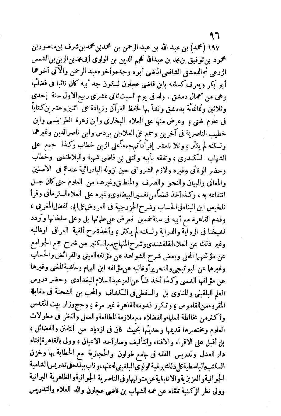 لتأييد عدم الطَّهَارَة مَعَ نظم ونثر وتقاييد مهمة. وَكَانَ إِمَامًا عَلامَة متقنا حجَّة ضابطا جيد الْفَهم لَكِن حافظته أَجود دينا عفيفا وافر الْعقل كثير التودد والخبرة بمخالطة الْكِبَار فَمن دونهم حسن الشكالة والمحاضرة جيد الْخط رَاغِبًا فِي الْفَائِدَة والمذاكرة عديم الْخَوْض فِيمَا لَا يعنيه ومحاسنه جمة وَلم يكن بِالشَّام من يماثله بل وَلَا الديار المصرية بِالنِّسْبَةِ لاستحضار محفوظاته لفظا وَمعنى لكَونه لم يكن يغْفل عَن تعاهدها مَعَ المداومة على التِّلَاوَة وَإِن كَانَ يُوجد من هُوَ فِي التَّحْقِيق أمتن مِنْهُ، وَقد كتب عني بعض الْأَجْوِبَة كَمَا كتبت عَنهُ من نظمه مَا أوردته فِي المعجم والوفيات وَكَثِيرًا مَا كَانَ يَقُول لي أغيب عَن بلدكم ثمَّ أجئ فَلَا أجد علماءها وفضلاءها انتقلوا ذرة بل هم فِي محلهم الَّذِي فَارَقْتهمْ فِيهِ أَو دونه، وَلم يكن الْمَنَاوِيّ بالمنصف لَهُ. مَاتَ فِي يَوْم الِاثْنَيْنِ ثَالِث عشر شَوَّال سنة سِتّ وَسبعين بعد أَن ضعف بِالْقَاهِرَةِ حَتَّى نقه وَركب فِي محفة رَاجعا إِلَى بَلَده على كره من أَصْحَابه وخاصته فَمَا انْتهى إِلَى بلبيس إِلَّا وَقد قضى فَرَجَعُوا بِهِ فِي المحفة إِلَى تربة الزين بن مزهر بِالْقربِ من تربة الشَّيْخ عبد الله المنوفي قبيل الْغُرُوب من يَوْمه فَغسل وكفن وَصلي عَلَيْهِ فِي مشْهد لَيْسَ بالطائل ثمَّ دفن وَحصل التأسف على فَقده. وبلغنا أَنه كَانَ إِذا أَفَاق من غمراته يَقُول ثَلَاثًا يَا لطيف وَمرَّة سُبْحَانَ الفعال لما يُرِيد حَتَّى مَاتَ رَحمَه الله وإيانا. مُحَمَّد بن عبد الله بن التقي عبد الرَّحْمَن الشَّمْس الصَّالِحِي وَيعرف بِابْن الْملح. سمع فِي سنة ثَمَان وَأَرْبَعين وَسَبْعمائة من الْعِمَاد أَحْمد بن عبد الْهَادِي بن عبد الحميد الْمَقْدِسِي النّصْف الأول من السَّفِينَة الأصبهانية وَحدث سمع مِنْهُ الأبي مَعَ رَفِيقه الْحَافِظ ابْن مُوسَى فِي سنة خمس عشر وَذكره التقي بن فَهد وَغَيره. مَاتَ. مُحَمَّد بن عبد الله بلكان بن عبد الرَّحْمَن الْمُحب أَبُو المحاسن القاهري