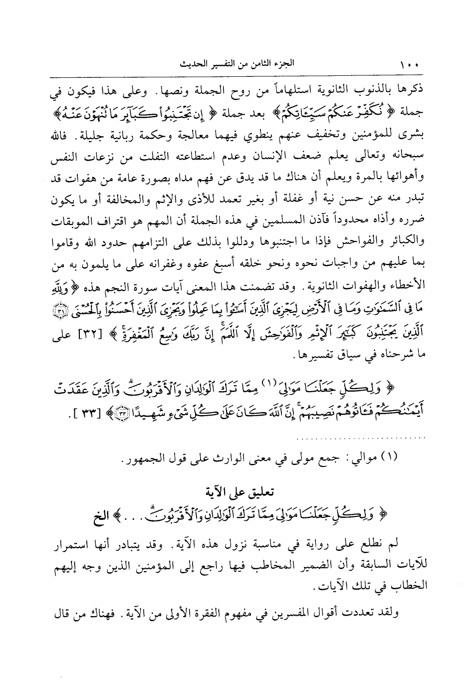 تعليق على الآية وَلِكُلٍّ جَعَلْنا مَوالِيَ مِمَّا تَرَكَ الْوالِدانِ وَالْأَقْرَبُونَ ... إلخ