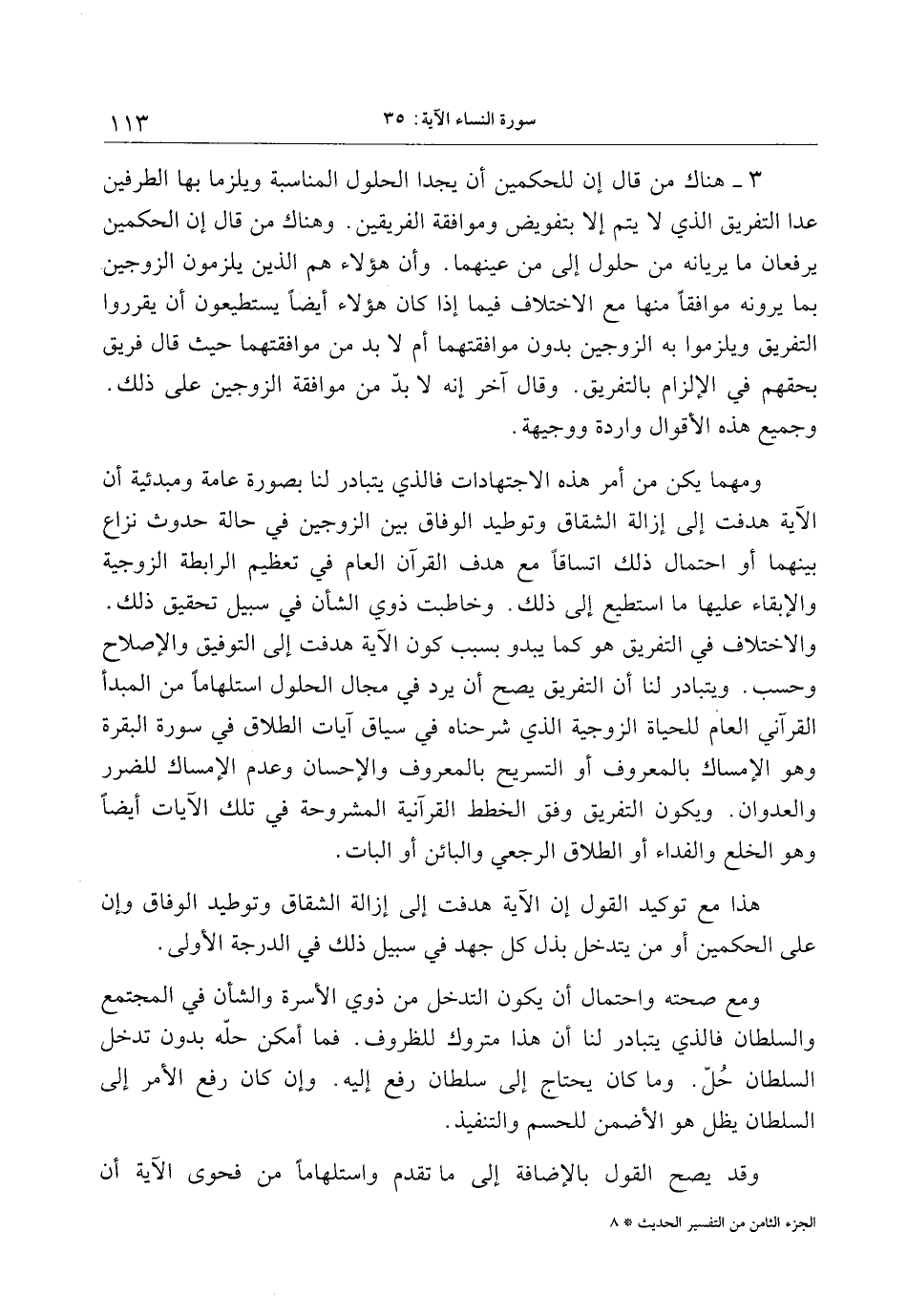 وقد يصح القول بالإضافة إلى ما تقدم واستلهاما من فحوى الآية أن الجزء الثامن من التفسير الحديث 8