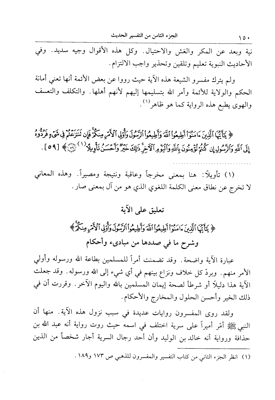 تعليق على الآية يا أَيُّهَا الَّذِينَ آمَنُوا أَطِيعُوا اللَّهَ وَأَطِيعُوا الرَّسُولَ وَأُولِي الْأَمْرِ مِنْكُمْ وشرح ما في صددها من مبادئ وأحكام