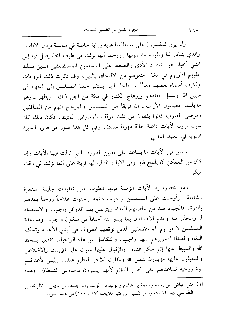 (1) مثل عياش بن ربيعة وسلمة بن هشام والوليد بن الوليد وأبو جندب بن سهيل. انظر تفسير الطبرسي لهذه الآيات وانظر تفسير ابن كثير للآيات [97- 100] من هذه السورة.