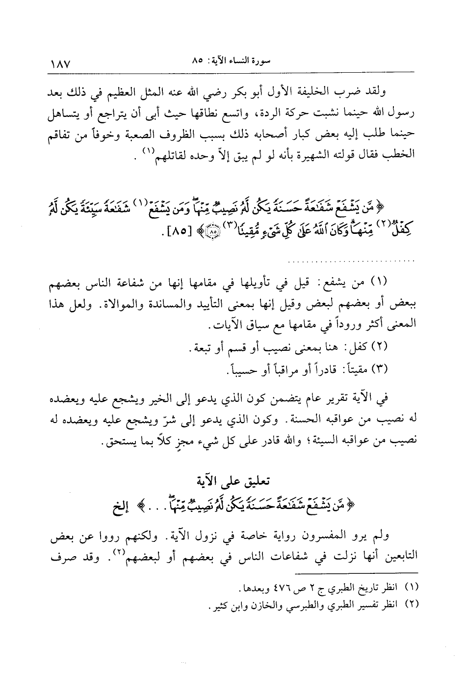 تعليق على الآية مَنْ يَشْفَعْ شَفاعَةً حَسَنَةً يَكُنْ لَهُ نَصِيبٌ مِنْها ... إلخ
