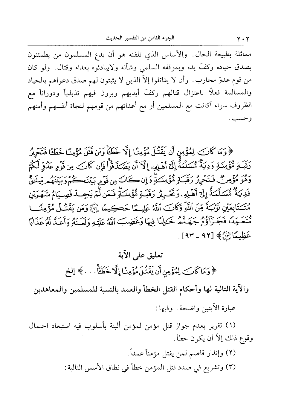 . تعليق على الآية وَما كانَ لِمُؤْمِنٍ أَنْ يَقْتُلَ مُؤْمِناً إِلَّا خَطَأً ... إلخ والآية التالية لها وأحكام القتل الخطأ والعمد بالنسبة للمسلمين والمعاهدين