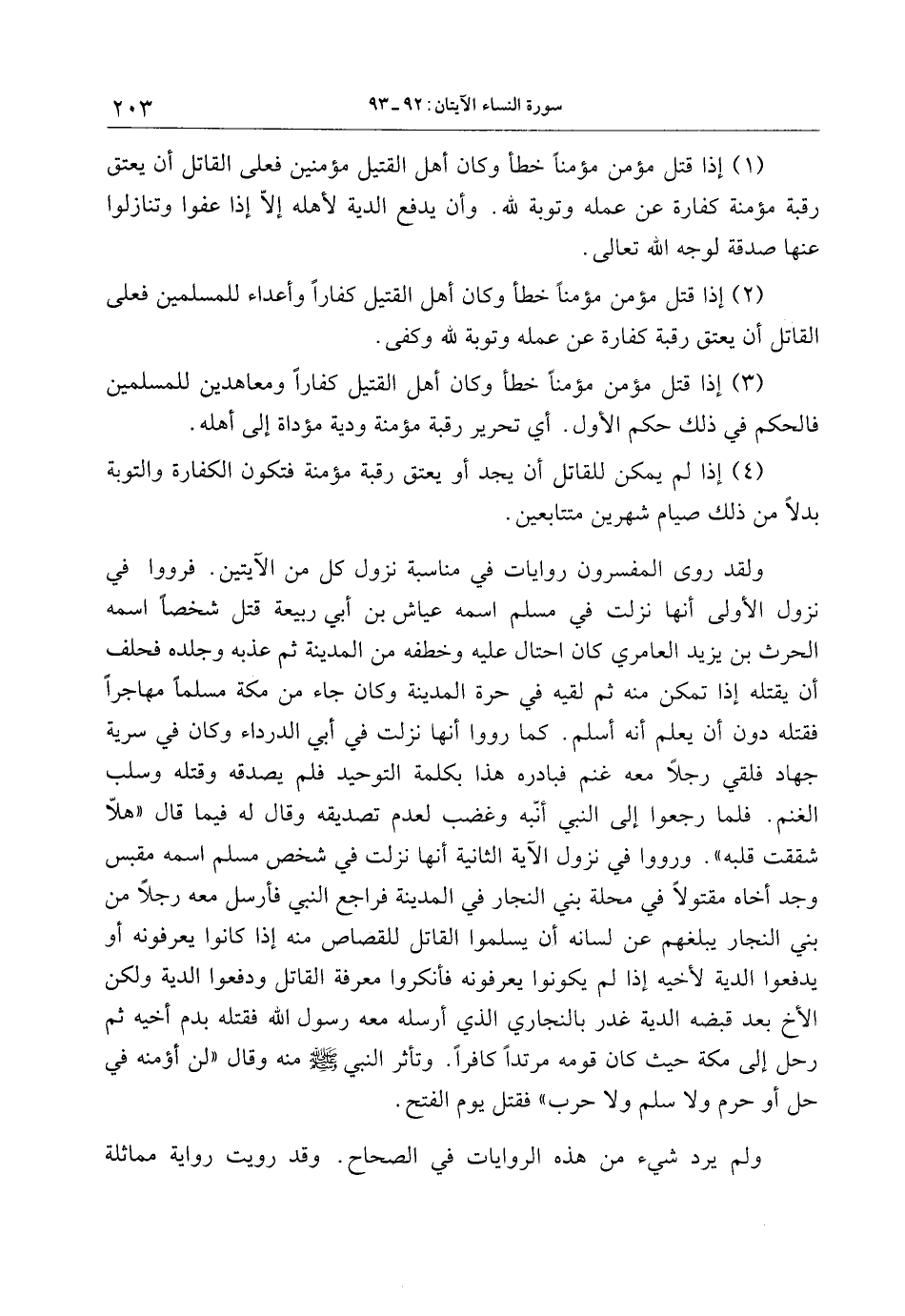 (2) إذا قتل مؤمن مؤمنا خطأ وكان أهل القتيل كفارا وأعداء للمسلمين فعلى القاتل أن يعتق رقبة كفارة عن عمله وتوبة لله وكفى.