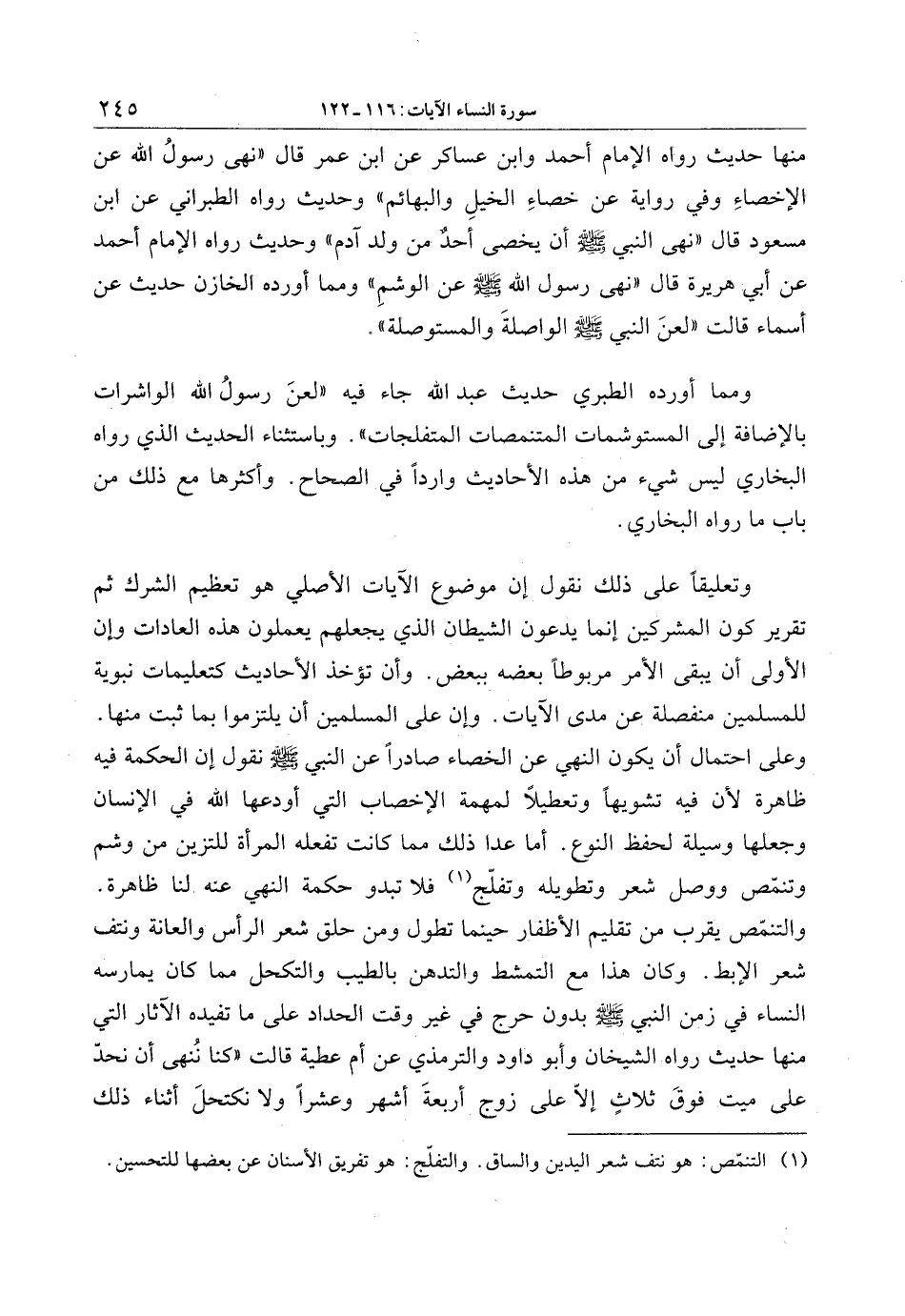(1) التنمّص: هو نتف شعر اليدين والساق. والتفلّج: هو تفريق الأسنان عن بعضها للتحسين.