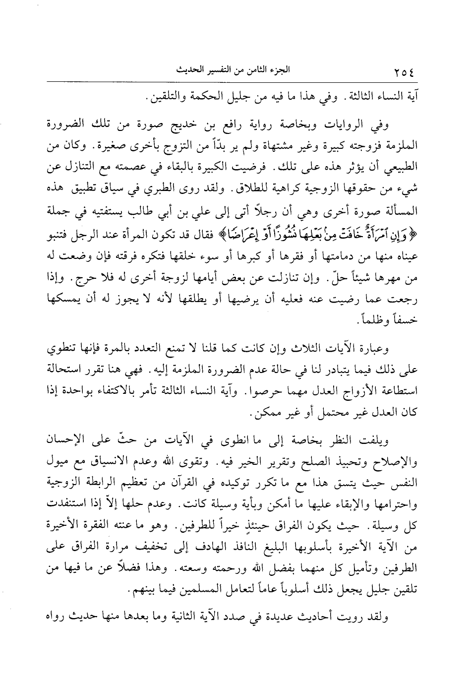 وعبارة الآيات الثلاث وإن كانت كما قلنا لا تمنع التعدد بالمرة فإنها تنطوي على ذلك فيما يتبادر لنا في حالة عدم الضرورة الملزمة إليه. فهي هنا تقرر استحالة استطاعة الأزواج العدل مهما حرصوا. وآية النساء الثالثة تأمر بالاكتفاء بواحدة إذا كان العدل غير محتمل أو غير ممكن.