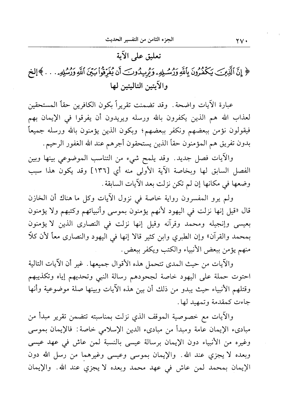 تعليق على الآية إِنَّ الَّذِينَ يَكْفُرُونَ بِاللَّهِ وَرُسُلِهِ وَيُرِيدُونَ أَنْ يُفَرِّقُوا بَيْنَ اللَّهِ وَرُسُلِهِ ... إلخ والآيتين التاليتين لها