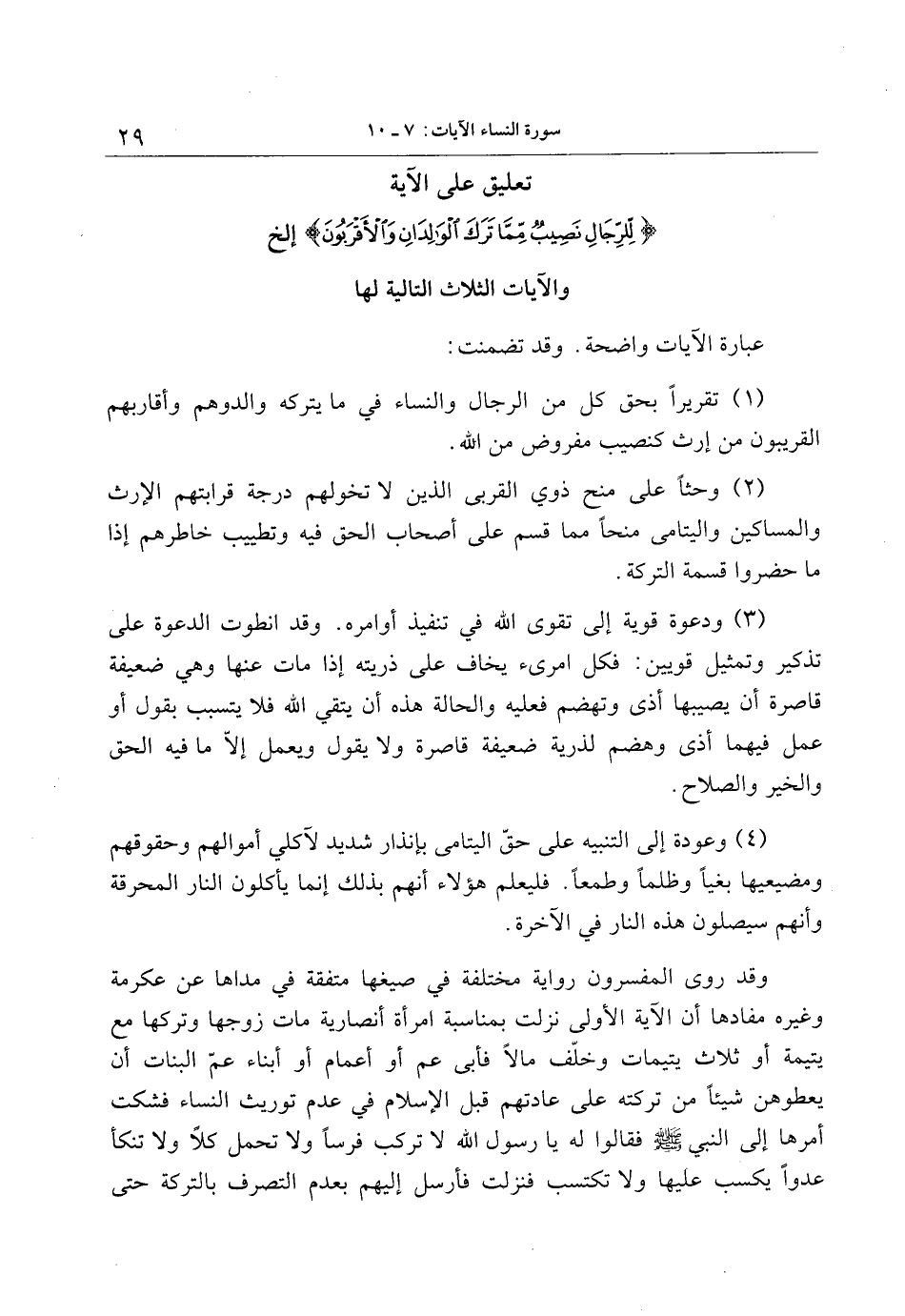تعليق على الآية لِلرِّجالِ نَصِيبٌ مِمَّا تَرَكَ الْوالِدانِ وَالْأَقْرَبُونَ إلخ والآيات الثلاث التالية لها