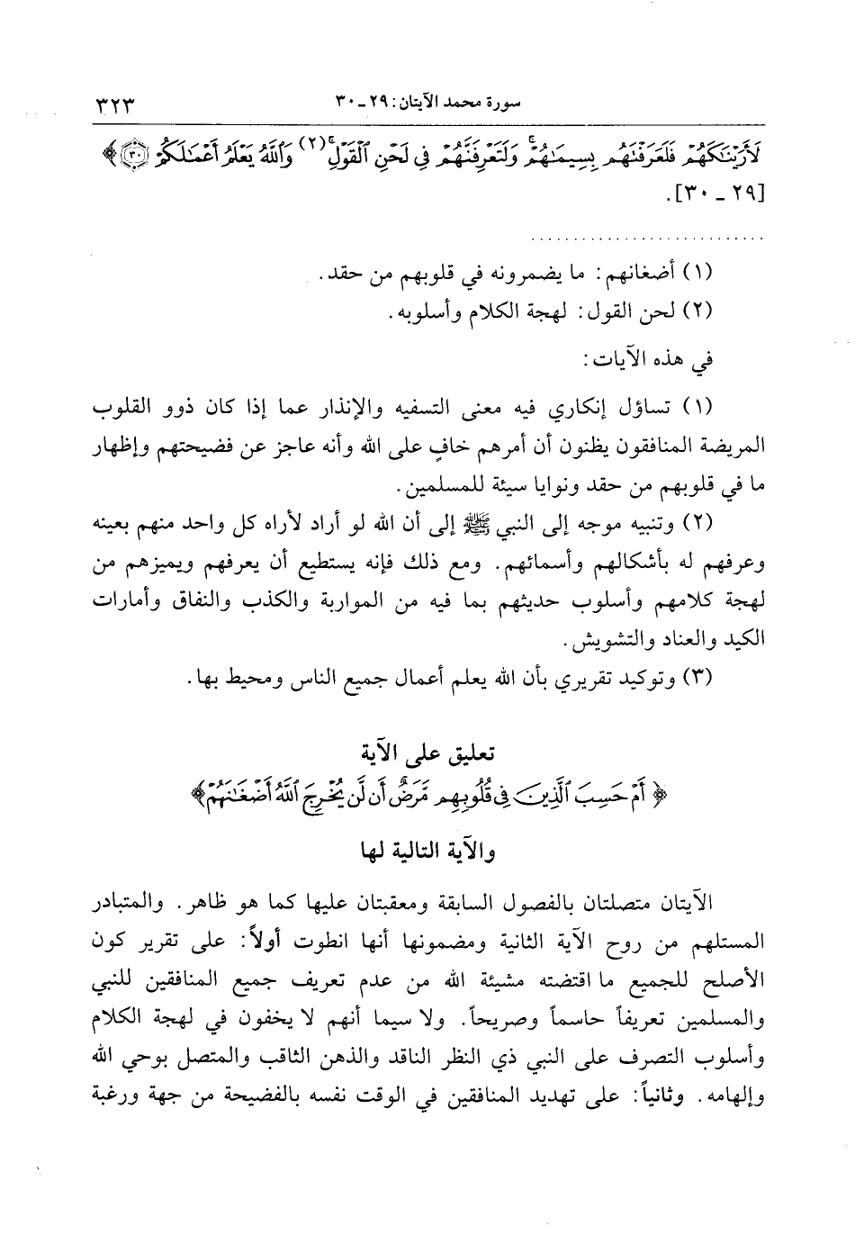 تعليق على الآية أَمْ حَسِبَ الَّذِينَ فِي قُلُوبِهِمْ مَرَضٌ أَنْ لَنْ يُخْرِجَ اللَّهُ أَضْغانَهُمْ والآية التالية لها