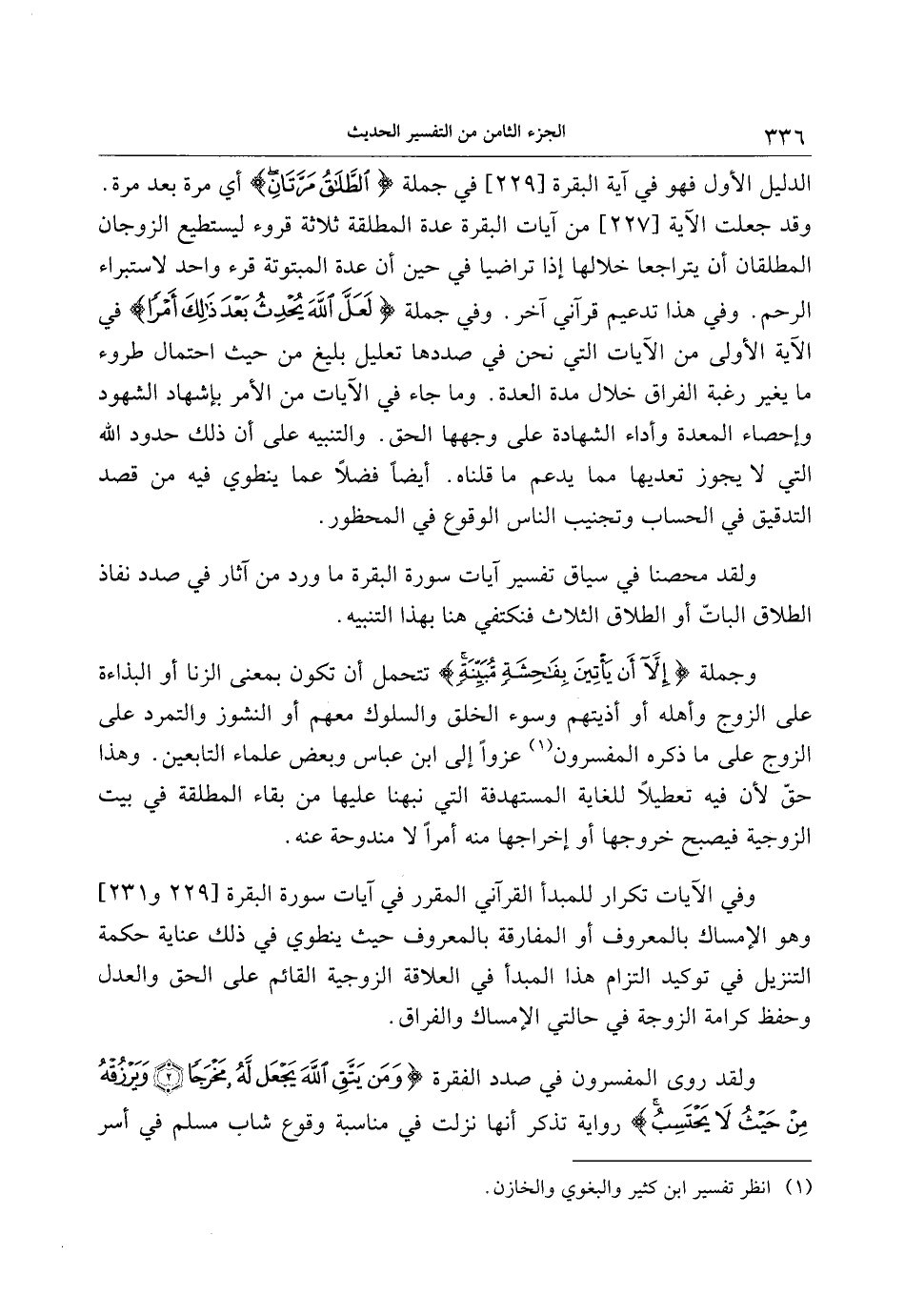 ولقد محصنا في سياق تفسير آيات سورة البقرة ما ورد من آثار في صدد نفاذ الطلاق الباتّ أو الطلاق الثلاث فنكتفي هنا بهذا التنبيه.