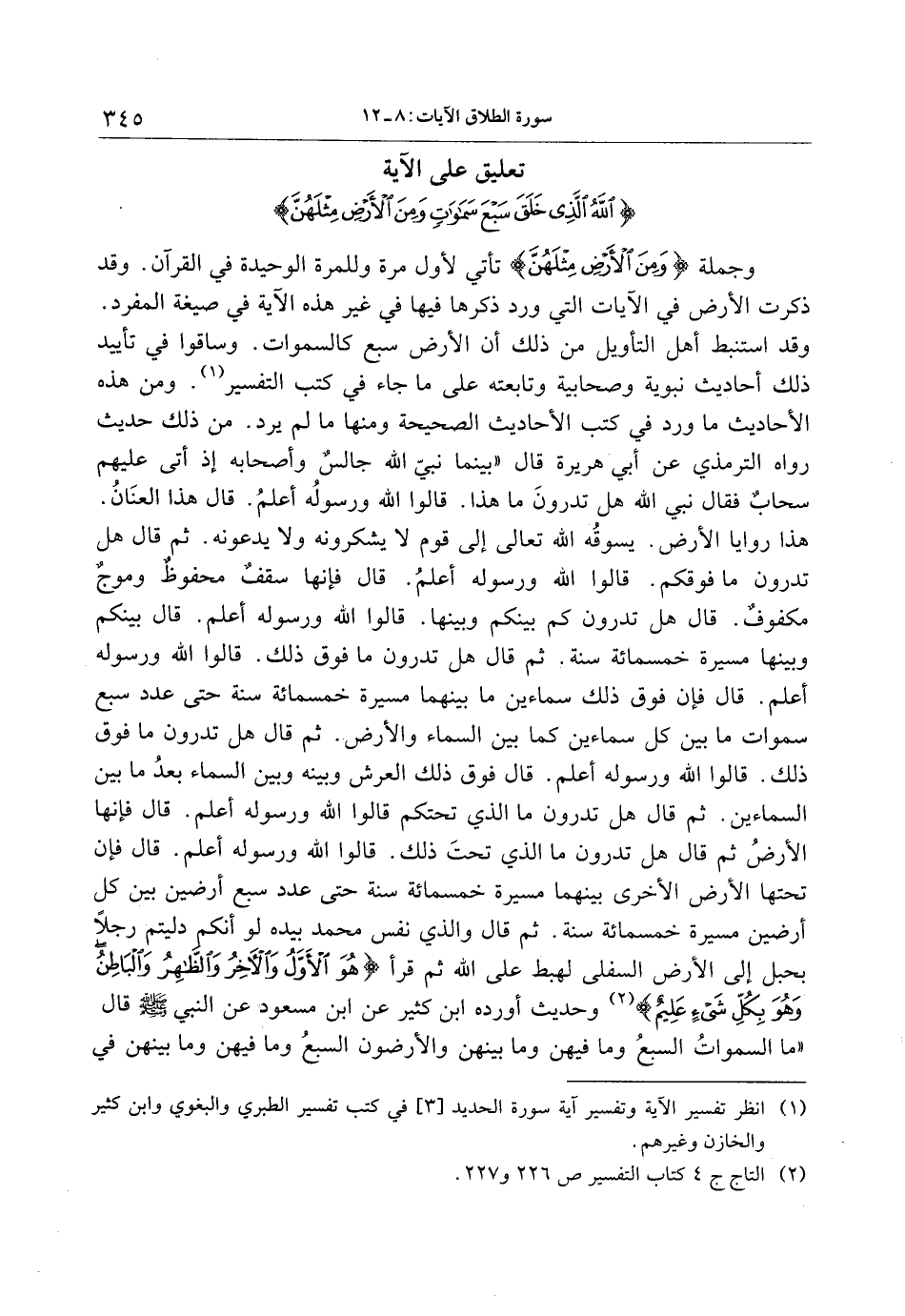 تعليق على الآية اللَّهُ الَّذِي خَلَقَ سَبْعَ سَماواتٍ وَمِنَ الْأَرْضِ مِثْلَهُنَ