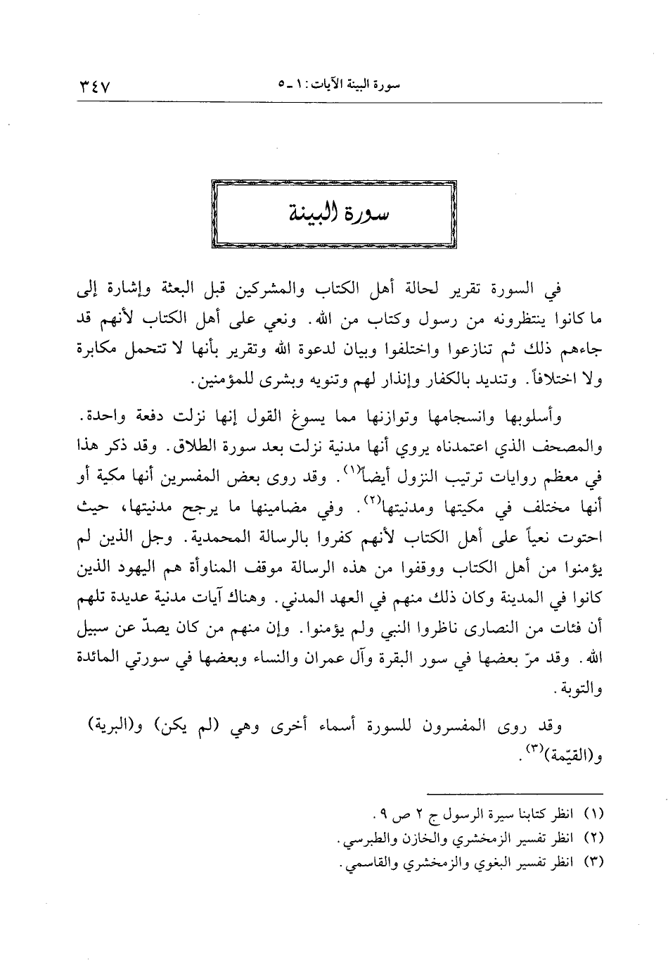 وقد روى المفسرون للسورة أسماء أخرى وهي (لم يكن) و (البرية) و (القيّمة) «3» .
