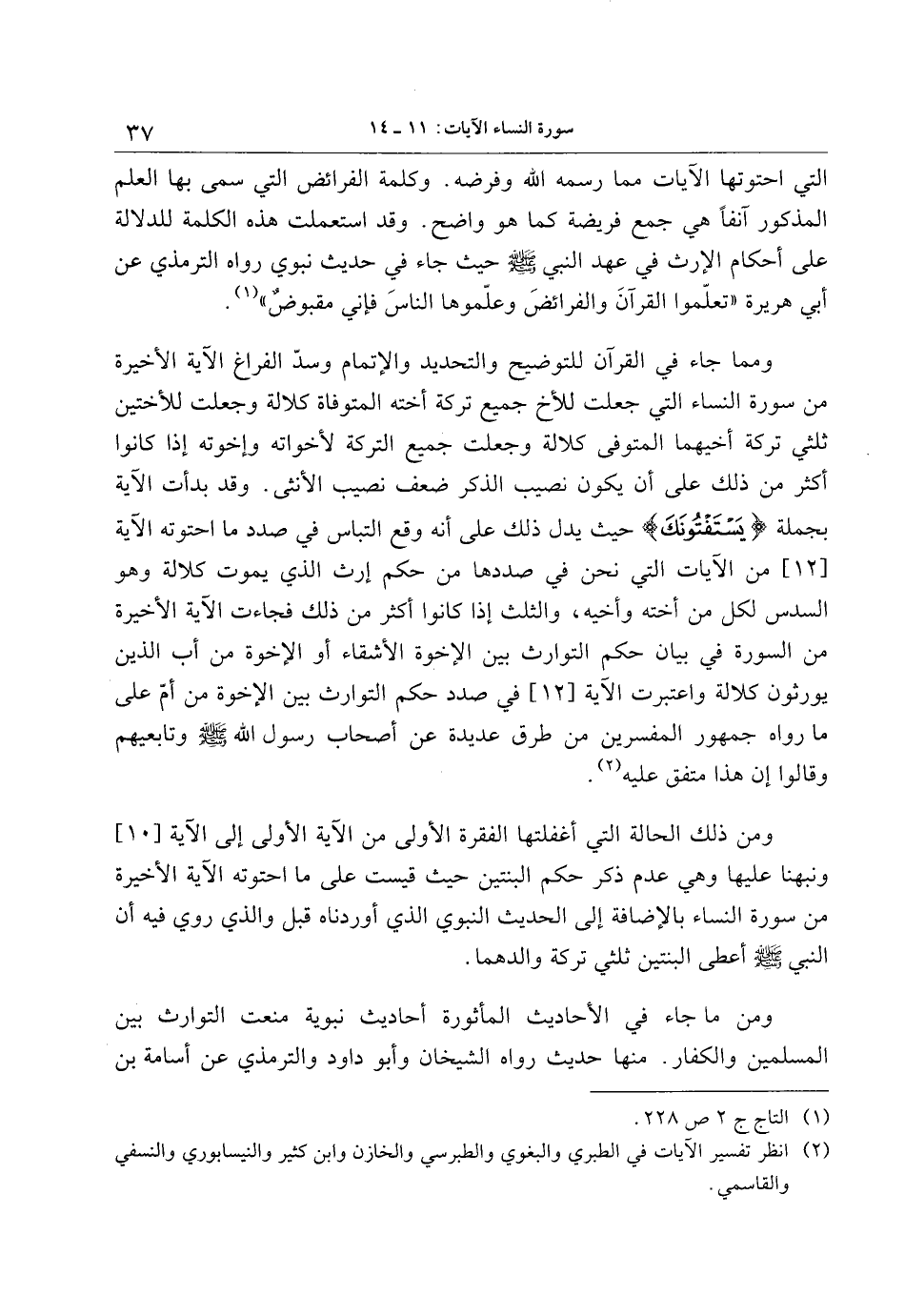 (2) انظر تفسير الآيات في الطبري والبغوي والطبرسي والخازن وابن كثير والنيسابوري والنسفي والقاسمي.