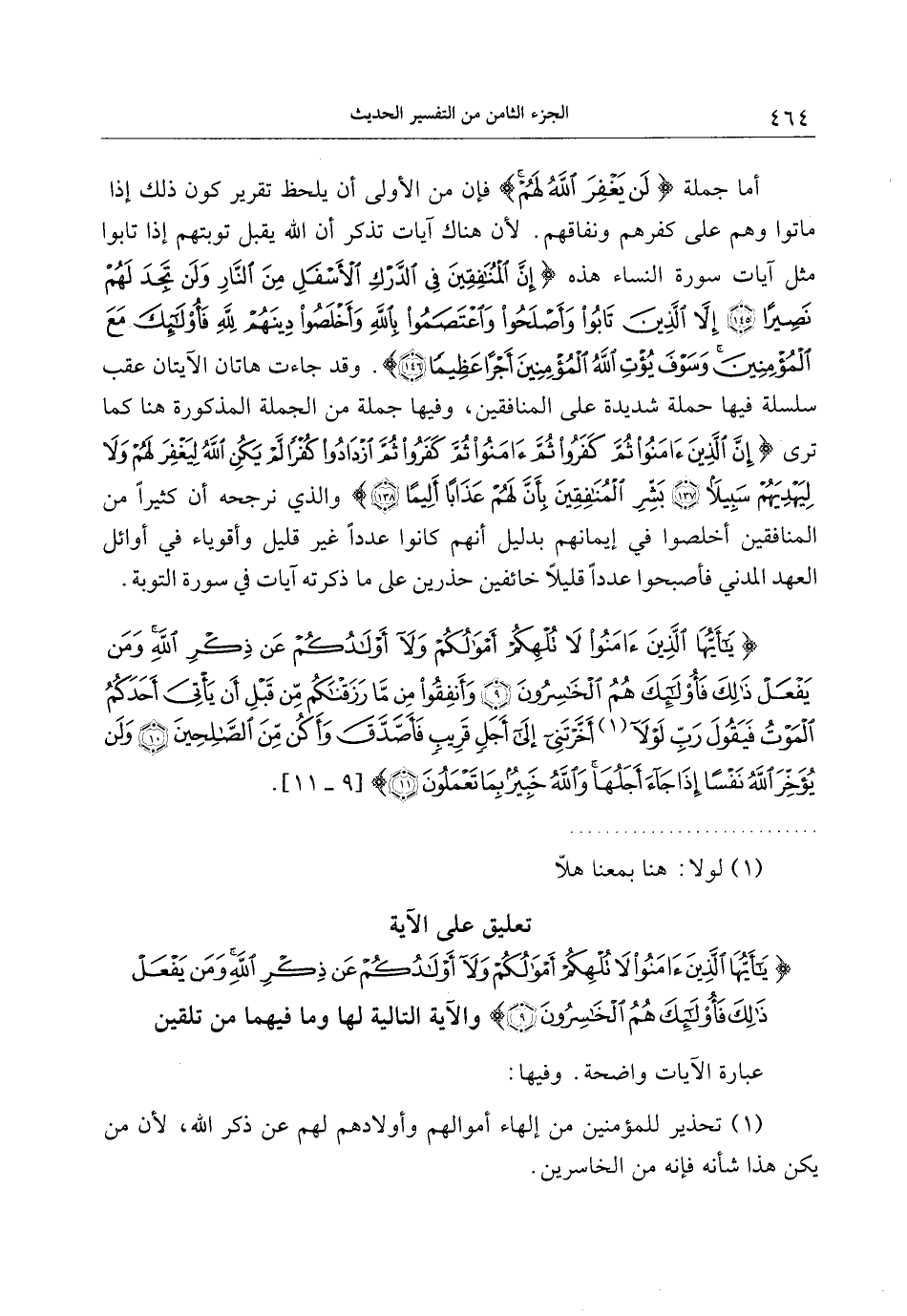 تعليق على الآية يا أَيُّهَا الَّذِينَ آمَنُوا لا تُلْهِكُمْ أَمْوالُكُمْ وَلا أَوْلادُكُمْ عَنْ ذِكْرِ اللَّهِ وَمَنْ يَفْعَلْ ذلِكَ فَأُولئِكَ هُمُ الْخاسِرُونَ (9) والآية التالية لها وما فيهما من تلقين