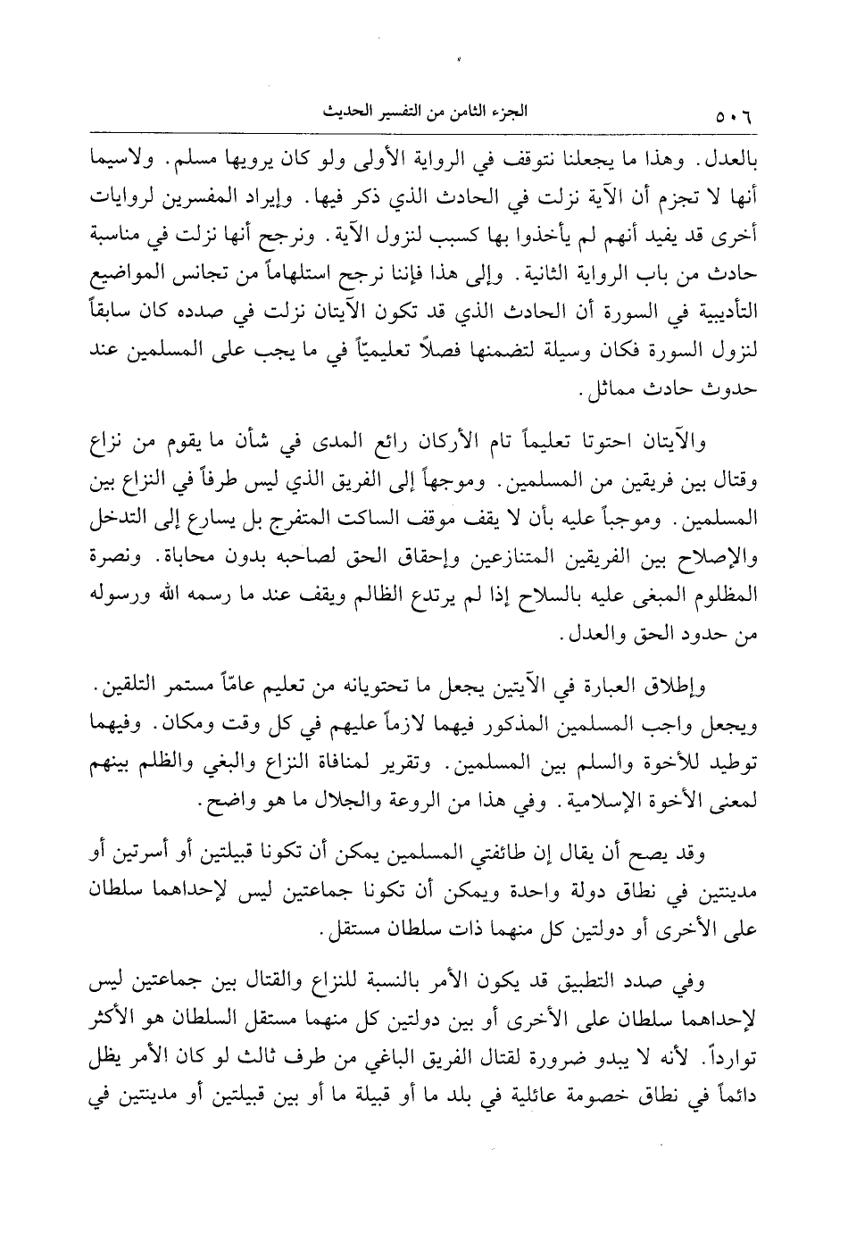 وقد يصح أن يقال إن طائفتي المسلمين يمكن أن تكونا قبيلتين أو أسرتين أو مدينتين في نطاق دولة واحدة ويمكن أن تكونا جماعتين ليس لإحداهما سلطان على الأخرى أو دولتين كل منهما ذات سلطان مستقل.