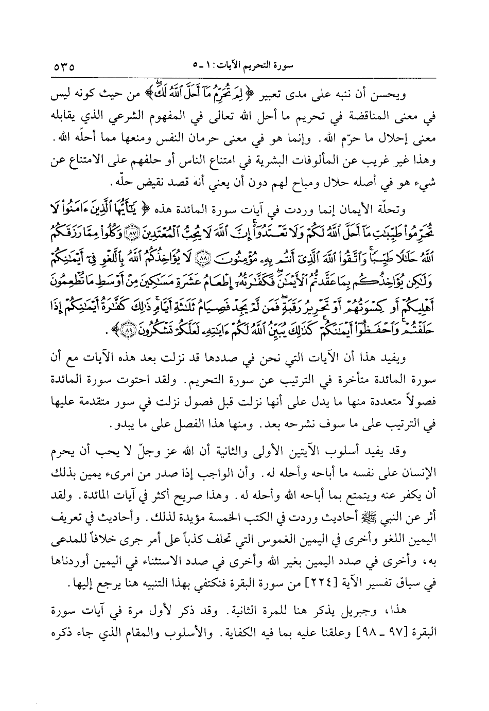 ويفيد هذا أن الآيات التي نحن في صددها قد نزلت بعد هذه الآيات مع أن سورة المائدة متأخرة في الترتيب عن سورة التحريم. ولقد احتوت سورة المائدة فصولا متعددة منها ما يدل على أنها نزلت قبل فصول نزلت في سور متقدمة عليها في الترتيب على ما سوف نشرحه بعد. ومنها هذا الفصل على ما يبدو.