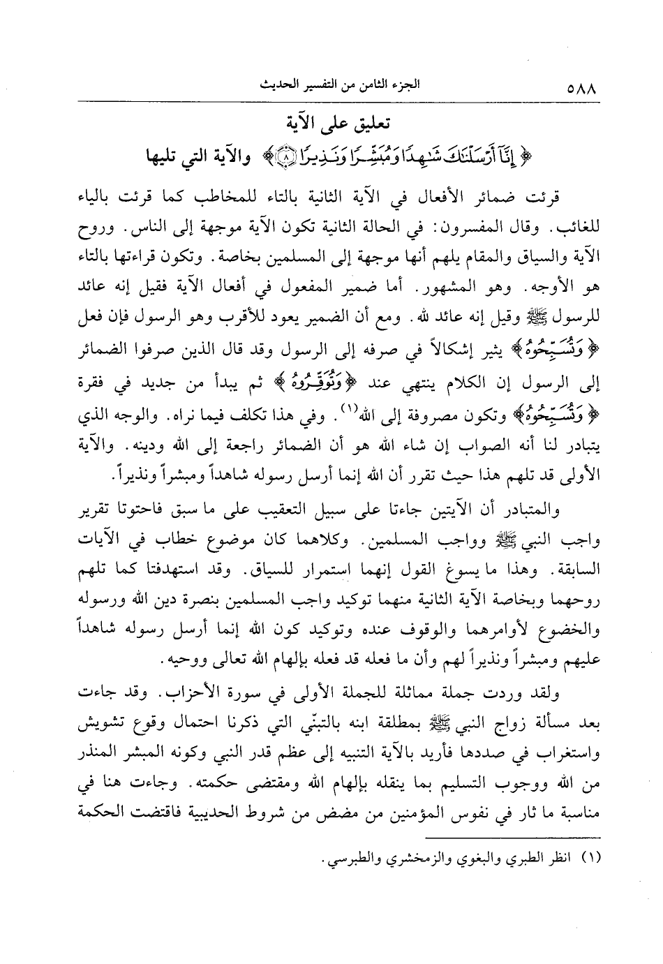 تعليق على الآية إِنَّا أَرْسَلْناكَ شاهِداً وَمُبَشِّراً وَنَذِيراً (8) والآية التي تليها