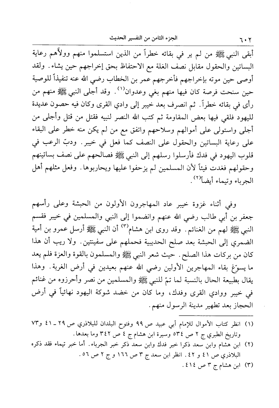 (2) ابن هشام وابن سعد ذكرا خبر فدك وابن سعد ذكر خبر الجرباء. أما خبر تيماء فقد ذكره البلاذري ص 41 و 42. انظر ابن سعد ج 3 ص 166 وج 2 ص 56.