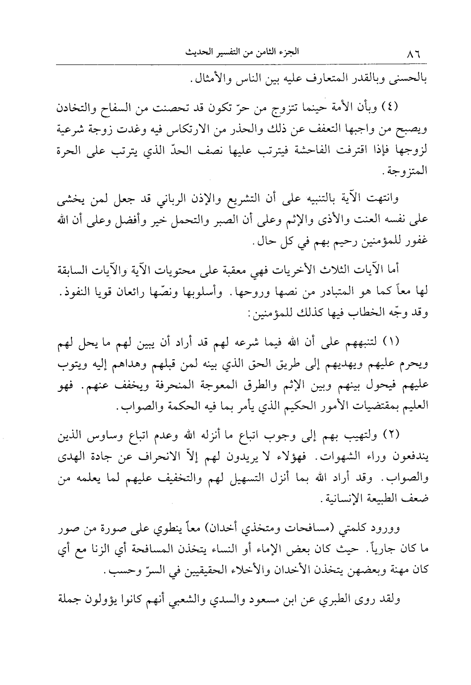 (2) ولتهيب بهم إلى وجوب اتباع ما أنزله الله وعدم اتباع وساوس الذين يندفعون وراء الشهوات. فهؤلاء لا يريدون لهم إلّا الانحراف عن جادة الهدى والصواب. وقد أراد الله بما أنزل التسهيل لهم والتخفيف عليهم لما يعلمه من ضعف الطبيعة الإنسانية.
