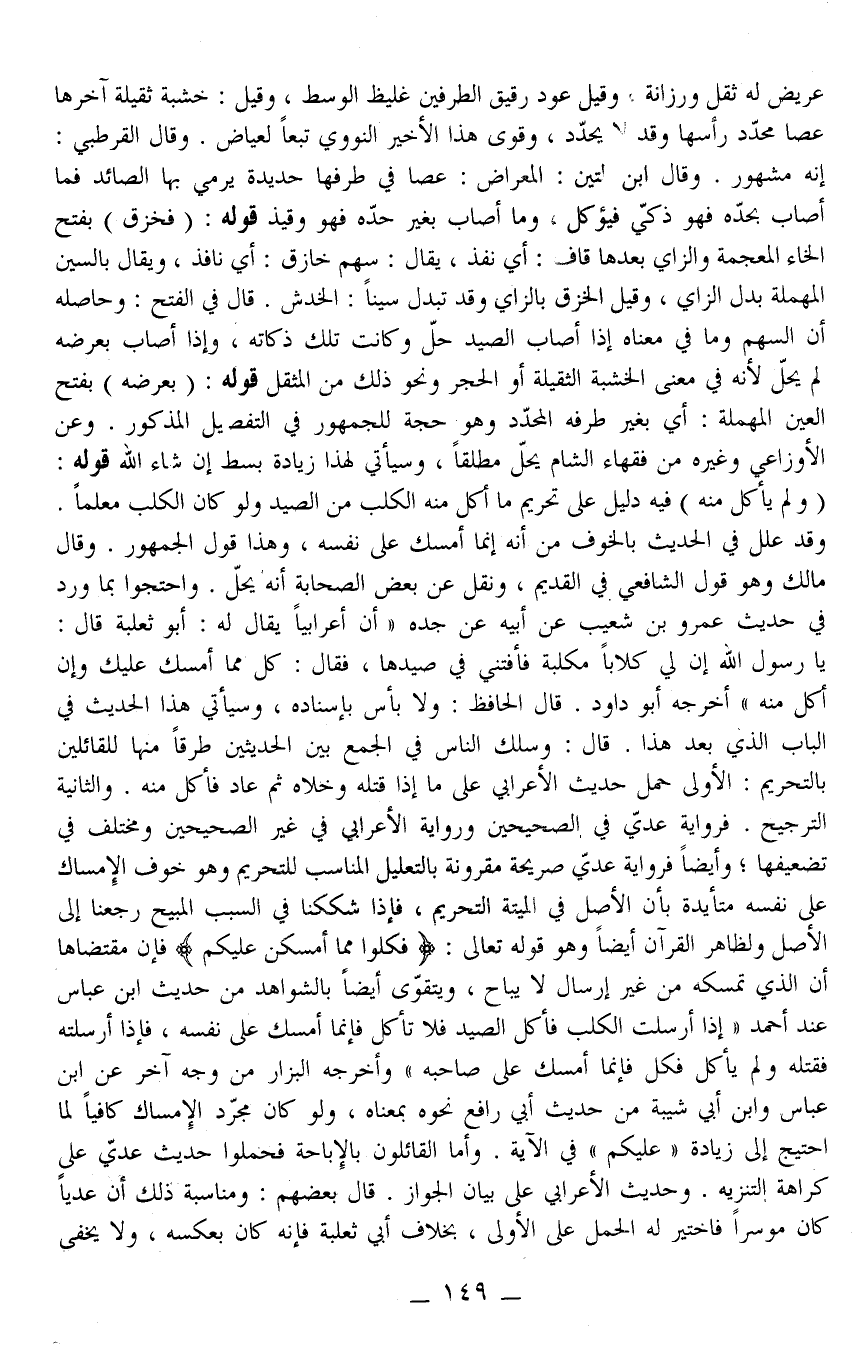 وَعَنْ الْأَوْزَاعِيِّ وَغَيْرِهِ مِنْ فُقَهَاءِ الشَّامِ يَحِلُّ مُطْلَقًا، وَسَيَأْتِي لِهَذَا زِيَادَةُ بَسْطٍ - إنْ شَاءَ اللَّهُ - قَوْلُهُ: (وَلَمْ يَأْكُلْ مِنْهُ) فِيهِ دَلِيلٌ عَلَى تَحْرِيمِ مَا أَكَلَ مِنْهُ الْكَلْبُ مِنْ الصَّيْدِ وَلَوْ كَانَ الْكَلْبُ مُعَلَّمًا. وَقَدْ عَلَّلَ فِي الْحَدِيثِ بِالْخَوْفِ مِنْ أَنَّهُ إنَّمَا أَمْسَكَ عَلَى نَفْسِهِ، وَهَذَا قَوْلُ الْجُمْهُورِ. وَقَالَ مَالِكٌ وَهُوَ قَوْلُ الشَّافِعِيِّ فِي الْقَدِيمِ، وَنُقِلَ عَنْ بَعْضِ الصَّحَابَةِ أَنَّهُ يَحِلُّ. وَاحْتَجُّوا بِمَا وَرَدَ فِي حَدِيثِ عَمْرِو بْنِ شُعَيْبٍ عَنْ أَبِيهِ عَنْ جَدِّهِ «أَنَّ أَعْرَابِيًّا يُقَالُ لَهُ: أَبُو ثَعْلَبَةَ قَالَ: يَا رَسُولَ اللَّهِ إنَّ لِي كِلَابًا مُكَلَّبَةً فَأَفْتِنِي فِي صَيْدِهَا، فَقَالَ: كُلْ مِمَّا أَمْسَكَ عَلَيْك وَإِنْ أَكَلَ مِنْهُ» أَخْرَجَهُ أَبُو دَاوُد. قَالَ الْحَافِظُ: وَلَا بَأْسَ بِإِسْنَادِهِ، وَسَيَأْتِي هَذَا الْحَدِيثُ فِي الْبَابِ الَّذِي بَعْدَ هَذَا. قَالَ: وَسَلَكَ النَّاسُ فِي الْجَمْعِ بَيْنَ الْحَدِيثَيْنِ طُرُقًا مِنْهَا لِلْقَائِلِينَ بِالتَّحْرِيمِ: الْأَوْلَى حَمْلُ حَدِيثِ الْأَعْرَابِيِّ عَلَى مَا إذَا قَتَلَهُ وَخَلَّاهُ ثُمَّ عَادَ فَأَكَلَ مِنْهُ. وَالثَّانِيَةُ التَّرْجِيحُ. فَرِوَايَةُ عَدِيٍّ فِي الصَّحِيحَيْنِ وَرِوَايَةُ الْأَعْرَابِيِّ فِي غَيْرِ الصَّحِيحَيْنِ وَمُخْتَلَفٌ فِي تَضْعِيفِهَا، وَأَيْضًا فَرِوَايَةُ عَدِيٍّ صَرِيحَةٌ مَقْرُونَةٌ بِالتَّعْلِيلِ الْمُنَاسِبِ لِلتَّحْرِيمِ وَهُوَ خَوْفُ الْإِمْسَاكِ عَلَى نَفْسِهِ مُتَأَيِّدَةٌ بِأَنَّ الْأَصْلَ فِي الْمَيْتَةِ التَّحْرِيمُ، فَإِذَا شَكَكْنَا فِي السَّبَبِ الْمُبِيحِ رَجَعْنَا إلَى الْأَصْلِ وَلِظَاهِرِ الْقُرْآنِ أَيْضًا وَهُوَ قَوْله تَعَالَى: {فَكُلُوا مِمَّا أَمْسَكْنَ عَلَيْكُمْ} [المائدة: 4] فَإِنَّ مُقْتَضَاهَا أَنَّ الَّذِي تُمْسِكُهُ مِنْ غَيْرِ إرْسَالٍ لَا يُبَاحُ، وَيَتَقَوَّى أَيْضًا بِالشَّوَاهِدِ مِنْ حَدِيثِ ابْنِ عَبَّاسٍ عِنْدَ أَحْمَدَ «إذَا أَرْسَلْت الْكَلْبَ فَأَكَلَ الصَّيْدَ فَلَا تَأْكُلْ فَإِنَّمَا أَمْسَكَ عَلَى نَفْسِهِ، فَإِذَا أَرْسَلْتَهُ فَقَتَلَهُ وَلَمْ يَأْكُلْ فَكُلْ فَإِنَّمَا أَمْسَكَ عَلَى صَاحِبِهِ» وَأَخْرَجَ الْبَزَّارُ مِنْ وَجْهٍ آخَرَ عَنْ ابْنِ عَبَّاسٍ وَابْنِ أَبِي شَيْبَةَ مِنْ حَدِيثِ أَبِي رَافِعٍ نَحْوَهُ بِمَعْنَاهُ، وَلَوْ كَانَ مُجَرَّدُ الْإِمْسَاكِ كَافِيًا لَمَا اُحْتِيجَ إلَى زِيَادَةِ " عَلَيْكُمْ " فِي الْآيَةِ.