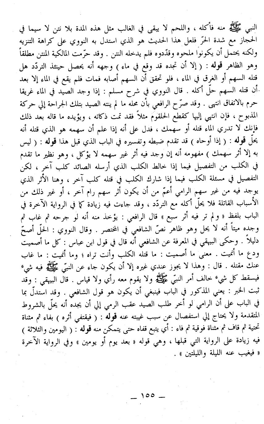 وَقَالَ النَّوَوِيُّ: الْحِلُّ أَصَحُّ دَلِيلًا. وَحَكَى الْبَيْهَقِيُّ فِي الْمَعْرِفَةِ عَنْ الشَّافِعِيِّ أَنَّهُ قَالَ فِي قَوْلِ ابْنِ عَبَّاسٍ: كُلْ مَا أَصَمَيْتَ وَدَعْ مَا أَنْمَيْتَ. مَعْنَى مَا أَصَمَيْت: مَا قَتَلَهُ الْكَلْبُ وَأَنْتَ تَرَاهُ وَمَا أَنْمَيْت: مَا غَابَ عَنْك مَقْتَلُهُ. قَالَ: وَهَذَا لَا يَجُوزُ عِنْدِي غَيْرُهُ إلَّا أَنْ يَكُونَ جَاءَ عَنْ النَّبِيِّ - صَلَّى اللَّهُ عَلَيْهِ وَسَلَّمَ - فِيهِ شَيْءٌ فَيَسْقُطُ كُلُّ شَيْءٍ خَالَفَ أَمْرَ النَّبِيِّ - صَلَّى اللَّهُ عَلَيْهِ وَسَلَّمَ - وَلَا يَقُومُ مَعَهُ رَأْيٌ وَلَا قِيَاسٌ. قَالَ الْبَيْهَقِيُّ: وَقَدْ ثَبَتَ الْخَبَرُ: يَعْنِي الْمَذْكُورَ فِي الْبَابِ فَيَنْبَغِي أَنْ يَكُونَ هُوَ قَوْلَ الشَّافِعِيِّ. وَقَدْ اسْتَدَلَّ بِمَا فِي الْبَابِ عَلَى أَنَّ الرَّامِيَ لَوْ أَخَّرَ طَلَبَ الصَّيْدِ عَقِبَ الرَّمْيِ إلَى أَنْ يَجِدَهُ أَنَّهُ يَحِلُّ بِالشُّرُوطِ الْمُتَقَدِّمَةِ وَلَا يَحْتَاجُ إلَى اسْتِفْصَالٍ عَنْ سَبَبِ غَيْبَتِهِ عَنْهُ. قَوْلُهُ: (فَيَقْتَفِي أَثَرَهُ) بِفَاءٍ ثُمَّ مُثَنَّاةٍ تَحْتِيَّةٍ ثُمَّ قَافٍ ثُمَّ مُثَنَّاةٍ فَوْقِيَّةٍ ثُمَّ فَاءٍ: أَيْ يَتْبَعُ قَفَاهُ حَتَّى يَتَمَكَّنَ مِنْهُ. قَوْلُهُ: (الْيَوْمَيْنِ وَالثَّلَاثَةِ) فِيهِ زِيَادَةٌ عَلَى الرِّوَايَةِ الَّتِي قَبْلَهَا، وَهِيَ قَوْلُهُ " بَعْدَ يَوْمٍ أَوْ يَوْمَيْنِ " وَفِي الرِّوَايَةِ الْآخِرَةِ " فَيَغِيبُ عَنْهُ اللَّيْلَةَ وَاللَّيْلَتَيْنِ ".